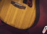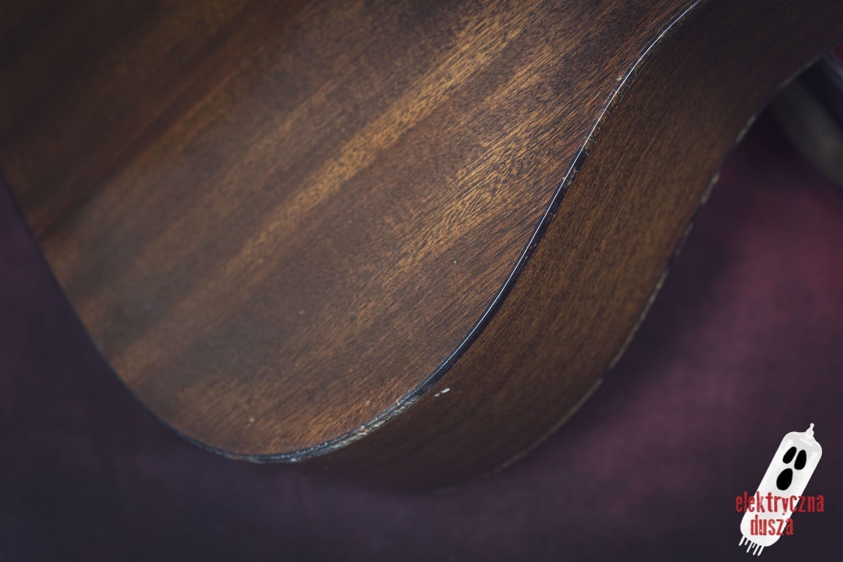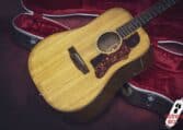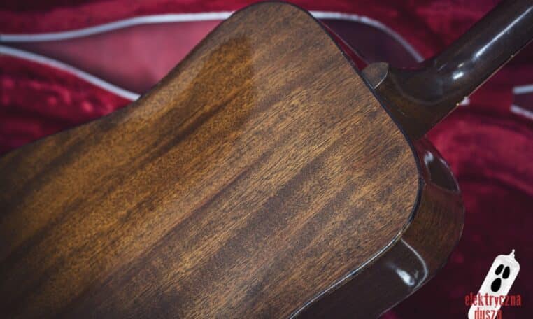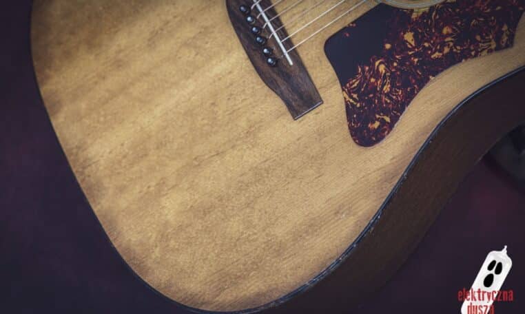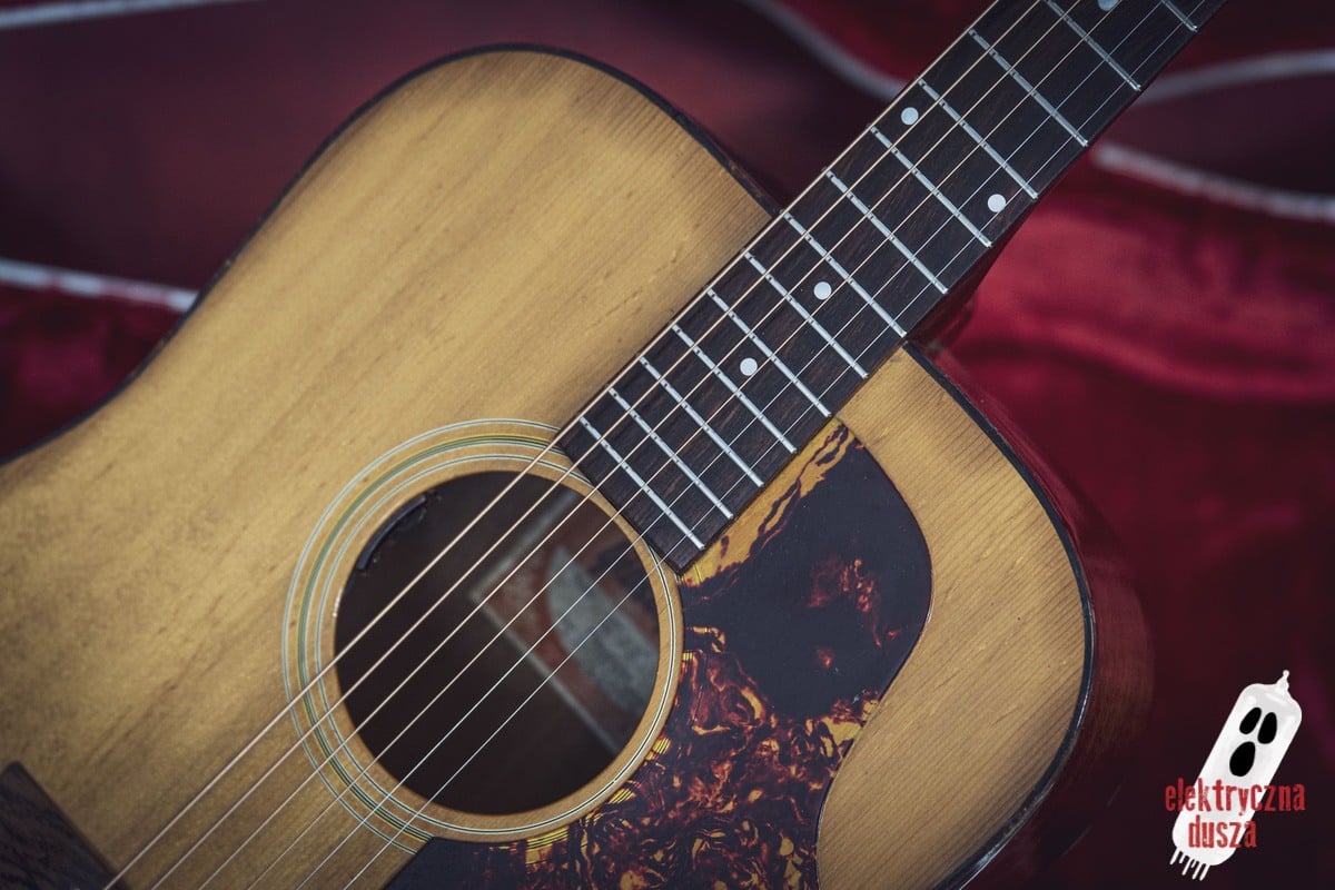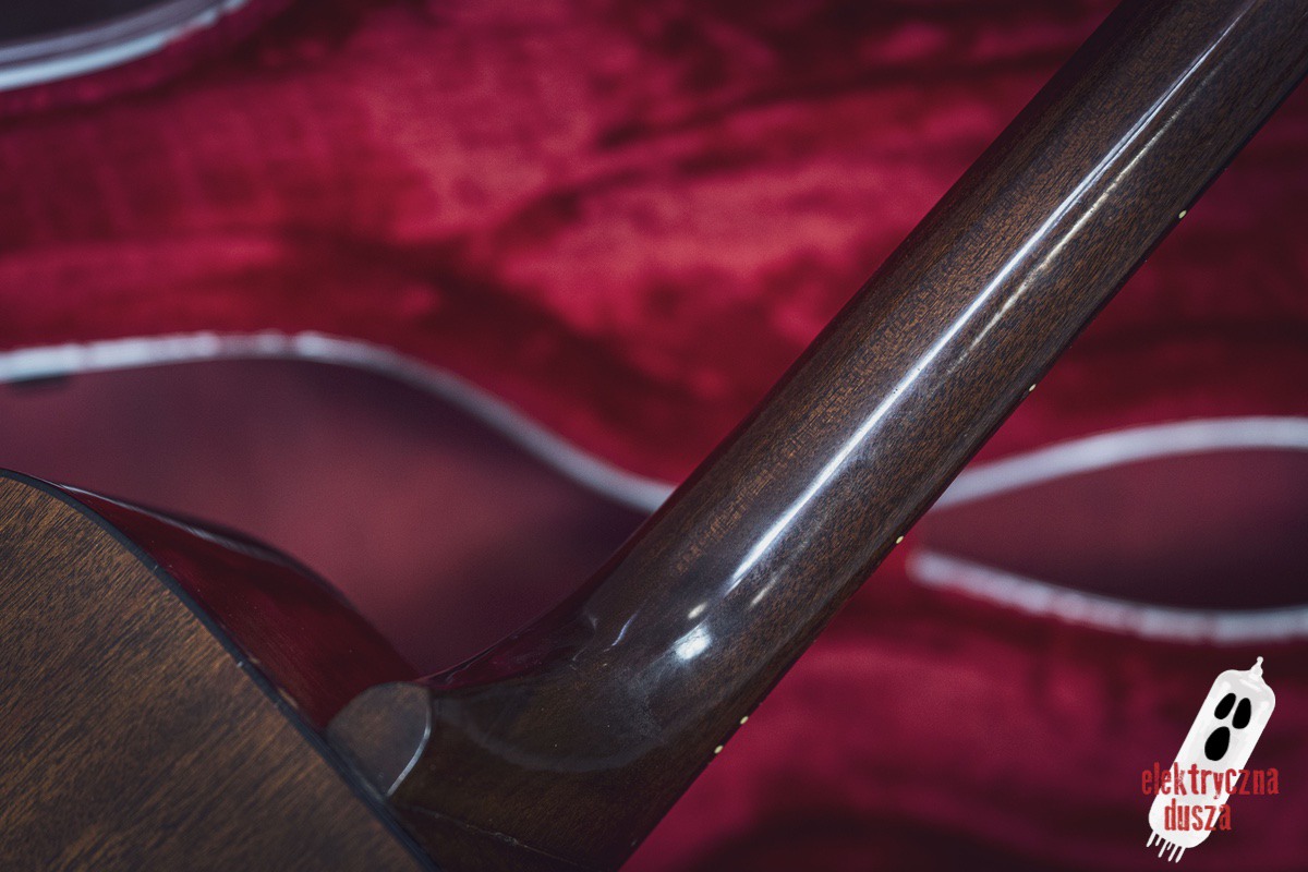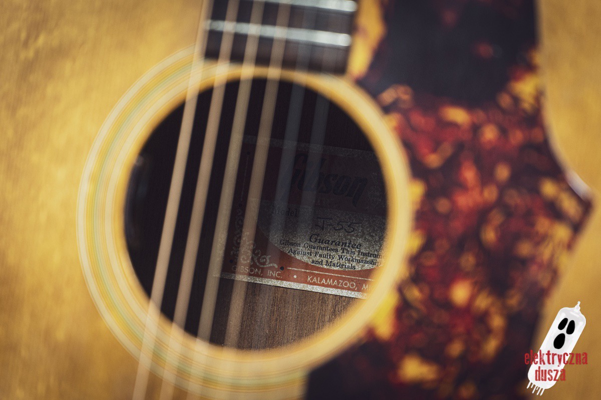The J-55 is a classic square-shoulder dreadnought with a true western vibe. The guitar is made entirely from solid wood: a spruce top, mahogany back and neck, and a rosewood fingerboard. A characteristic feature of this model is the large folk-style pickguard and tortoise binding, which give the guitar a slightly luxurious look.