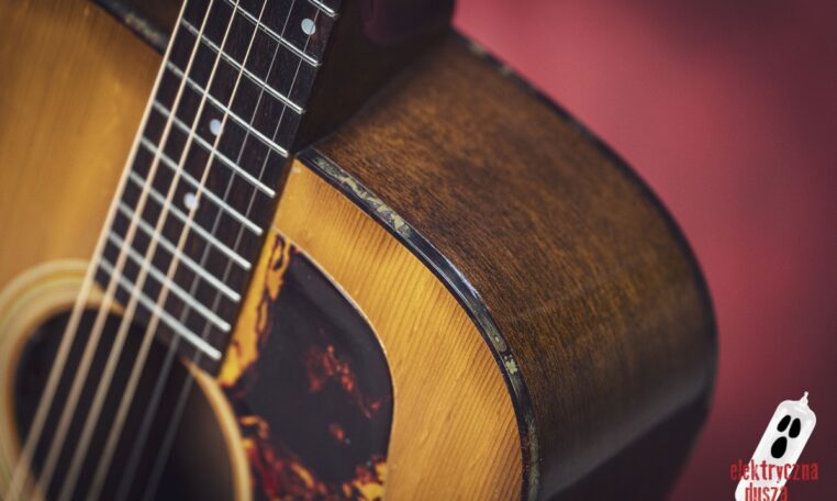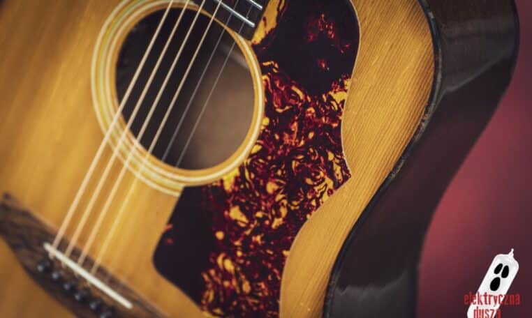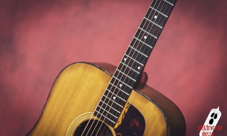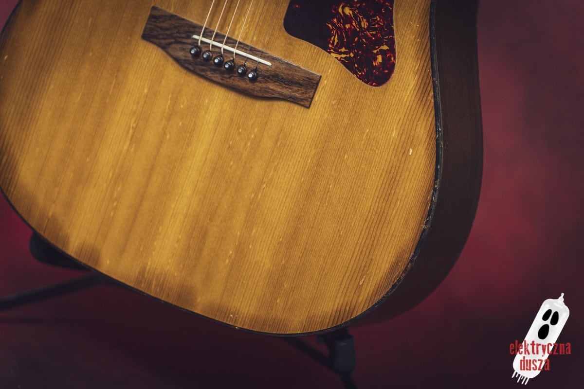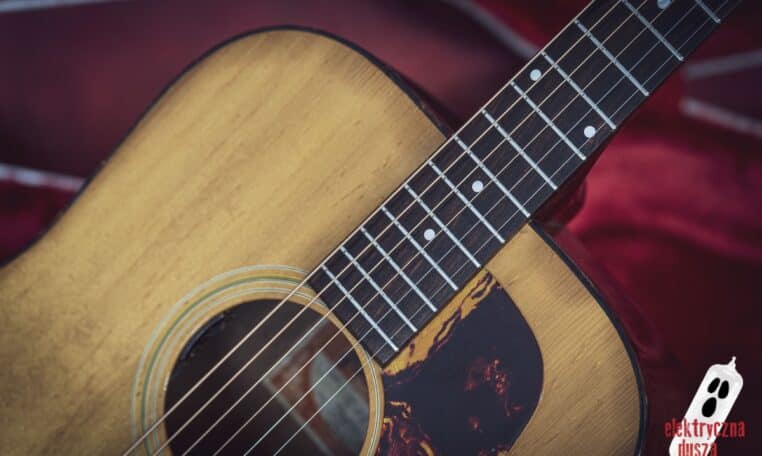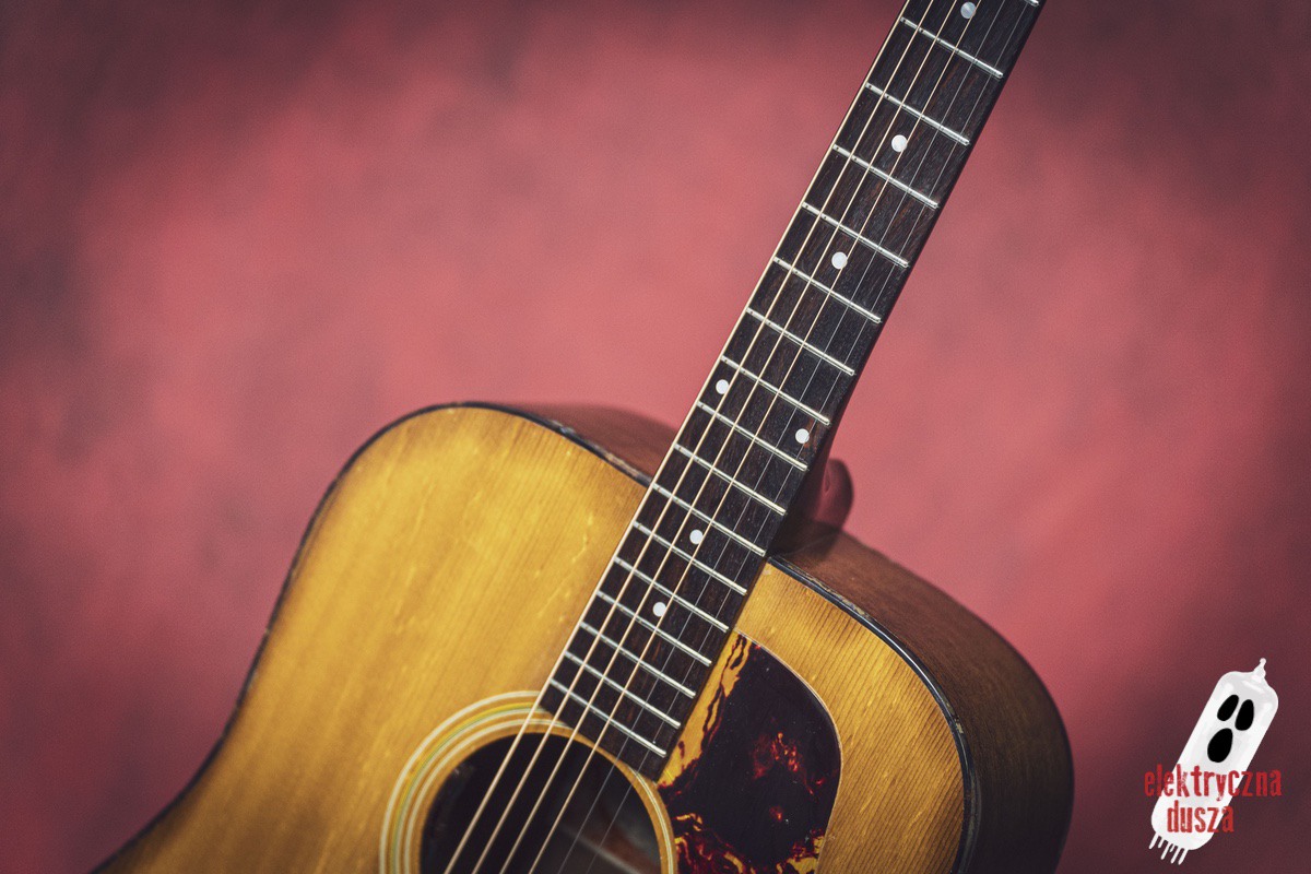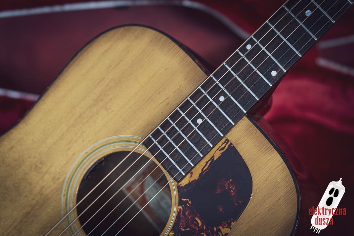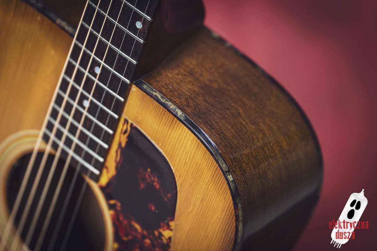 The J-55 is a classic square-shoulder dreadnought with a true western vibe. The guitar is made entirely from solid wood: a spruce top, mahogany back and neck, and a rosewood fingerboard. A characteristic feature of this model is the large folk-style pickguard and tortoise binding, which give the guitar a slightly luxurious look.