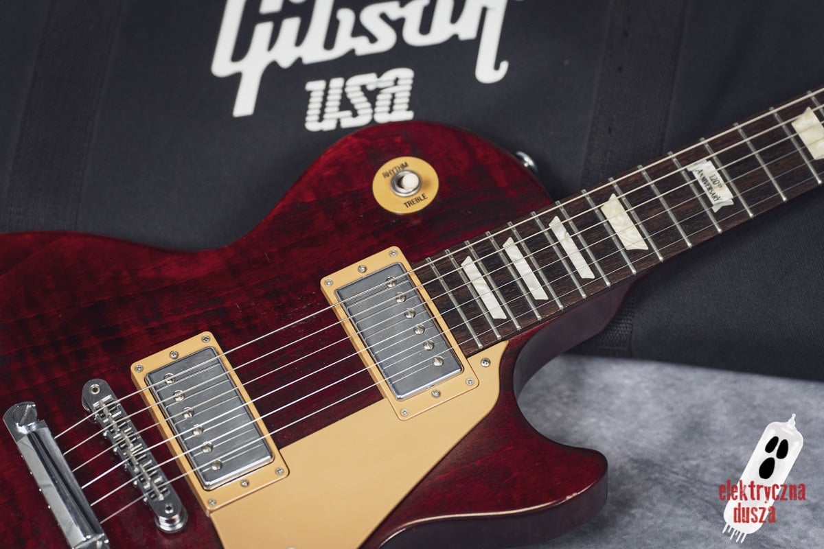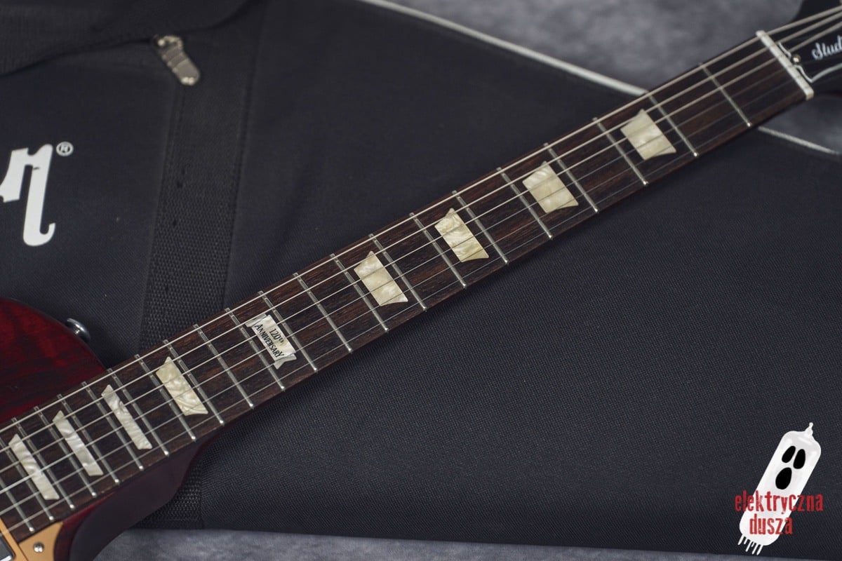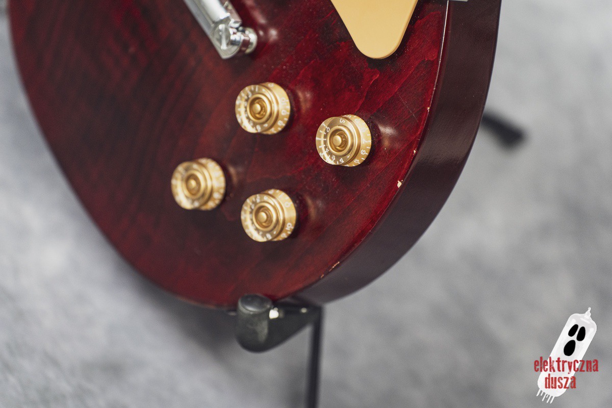 Electric Soul presents a Gibson Les Paul Studio guitar. This time it’s a 2014 model in the popular Wine Red finish. It’s an interesting version visually, with factory cream plastics.