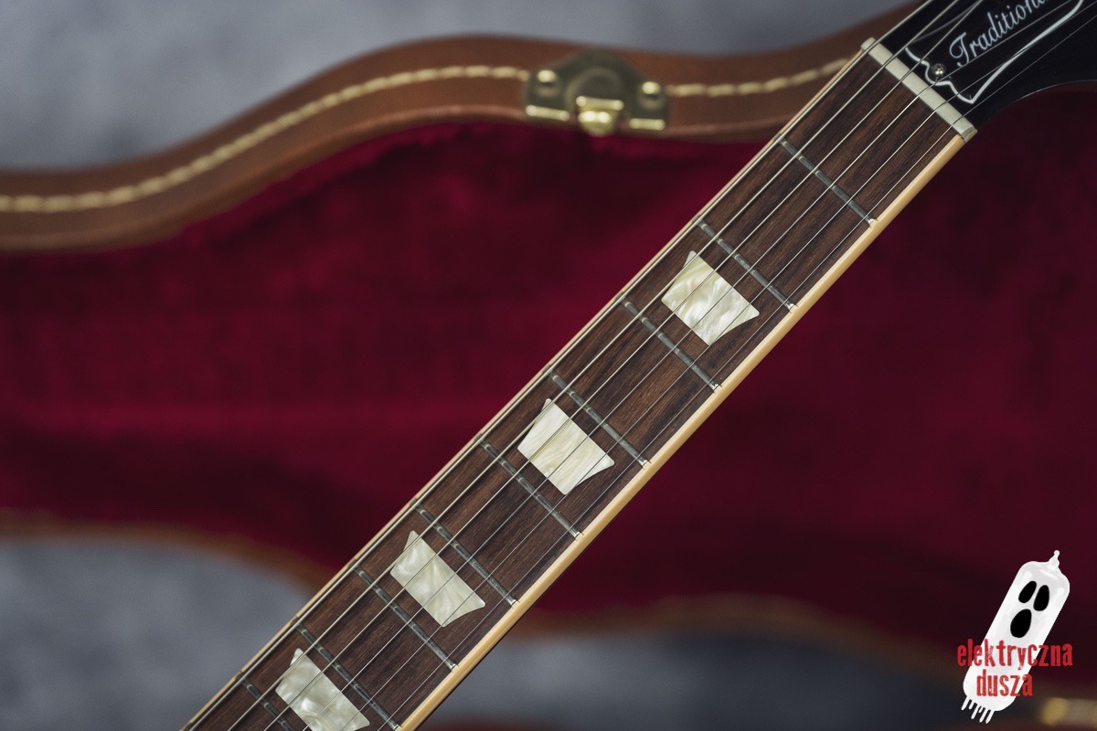 In 2017-2018, the Traditional model had a very interesting specification with many desired features. It has a solid body (no weight relief holes), a classic 50’s rounded neck, nickel hardware with an ABR bridge, and professional Burstbucker 1 and 2 pickups inspired by PAF.