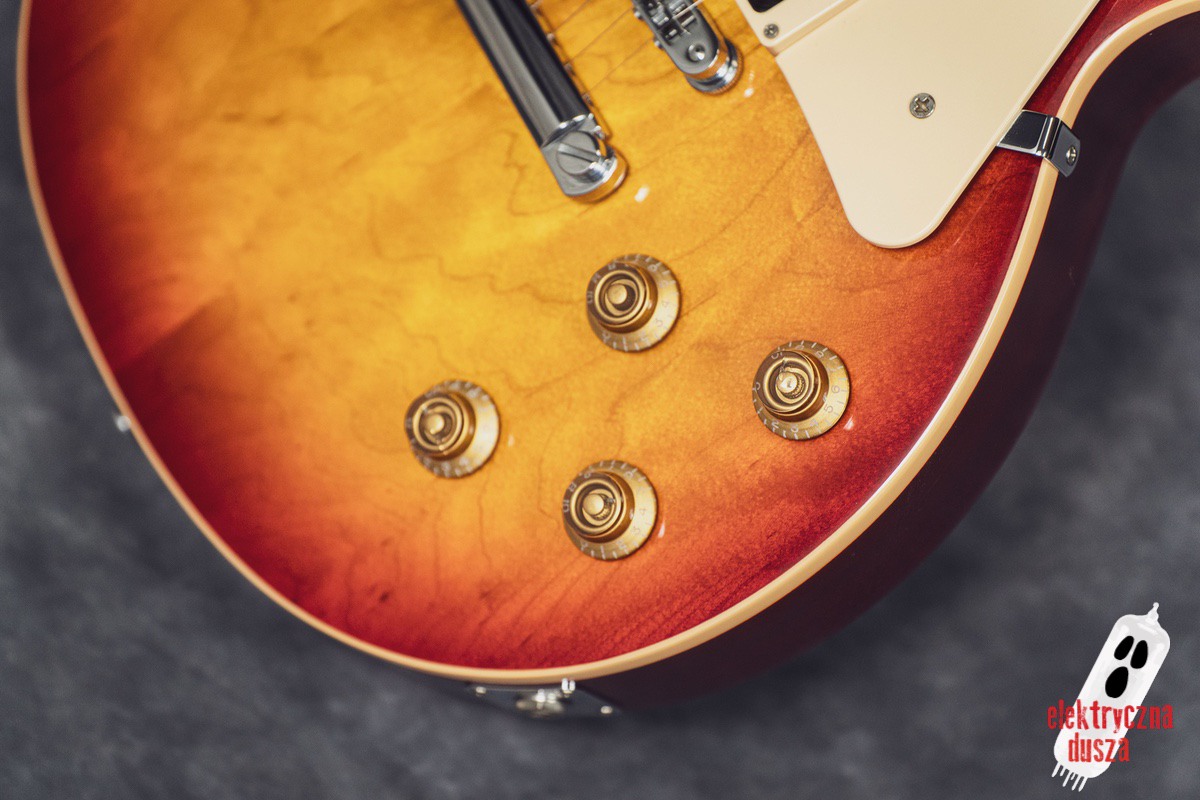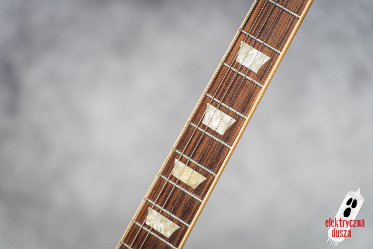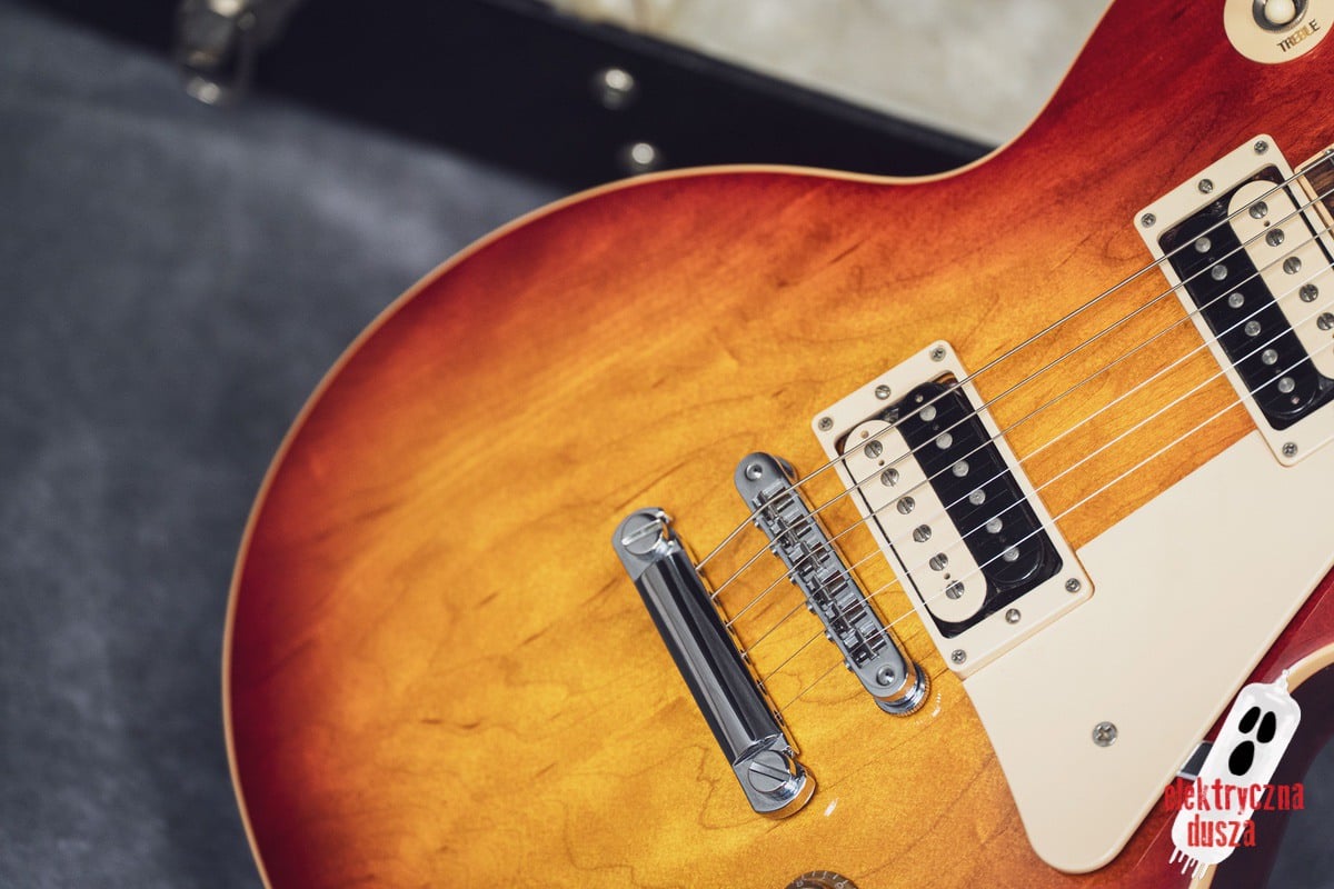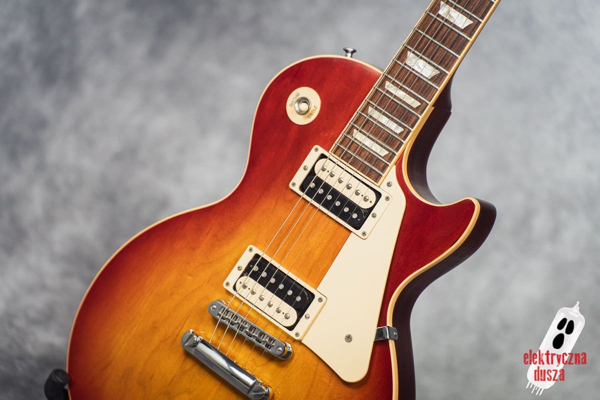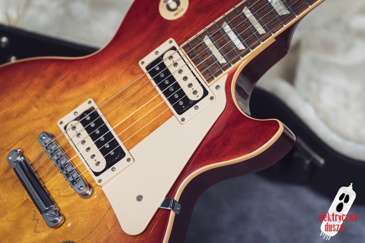 This version has a few important differences compared to the standard Traditional model. First, it has a slim 60s-style neck, which is much thinner than the usual Les Paul neck, great for players who don’t like thick necks. It also features different electronics: a Burstbucker 3 pickup at the bridge and a ’57 Classic at the neck