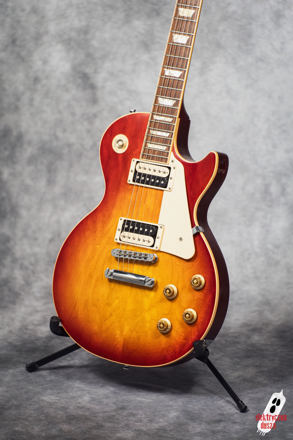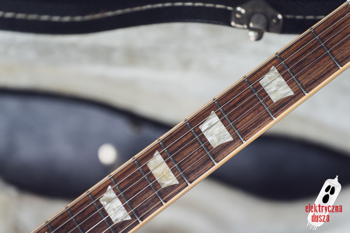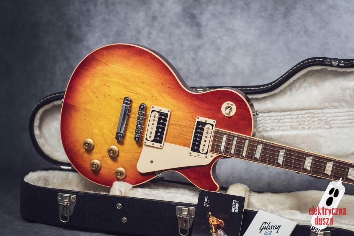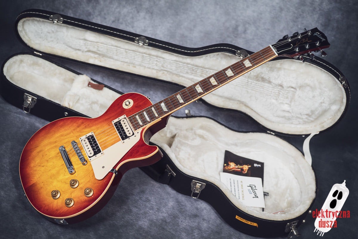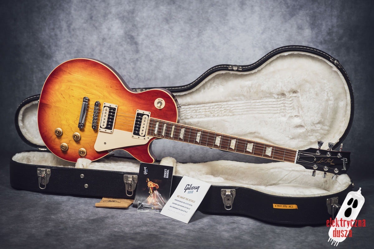 This version has a few important differences compared to the standard Traditional model. First, it has a slim 60s-style neck, which is much thinner than the usual Les Paul neck, great for players who don’t like thick necks. It also features different electronics: a Burstbucker 3 pickup at the bridge and a ’57 Classic at the neck