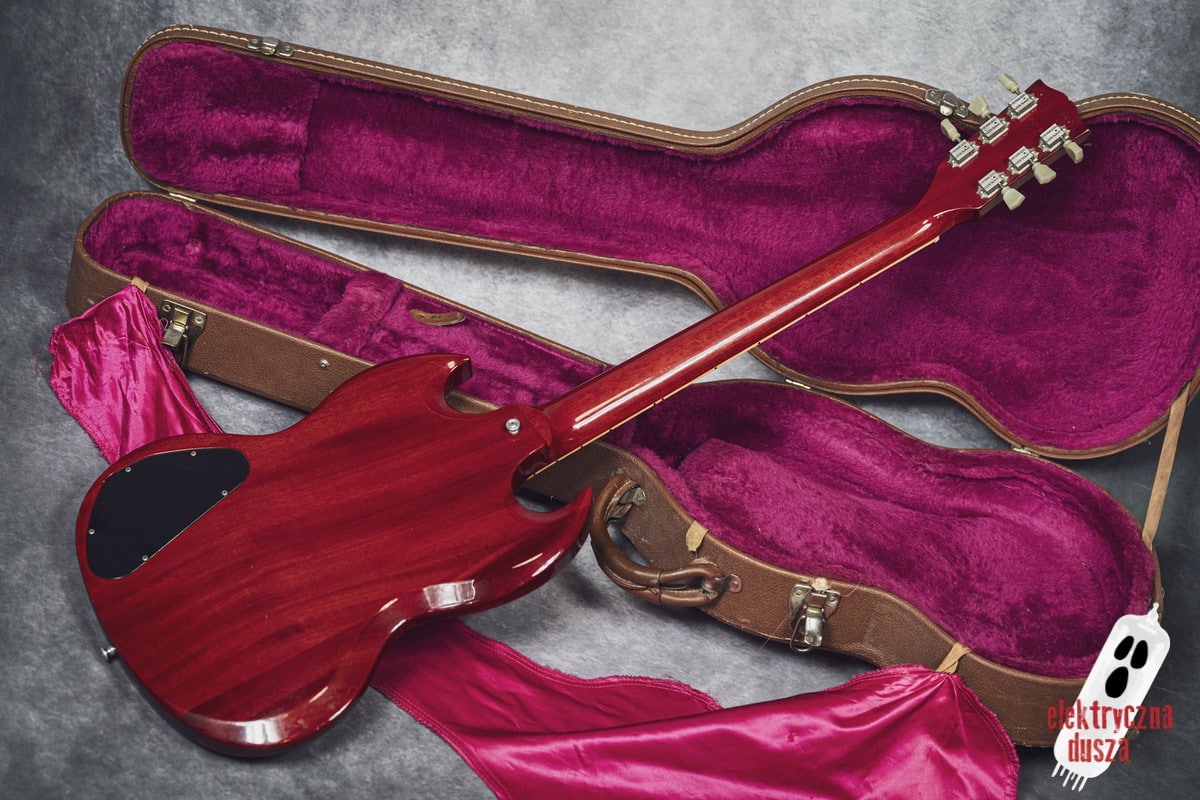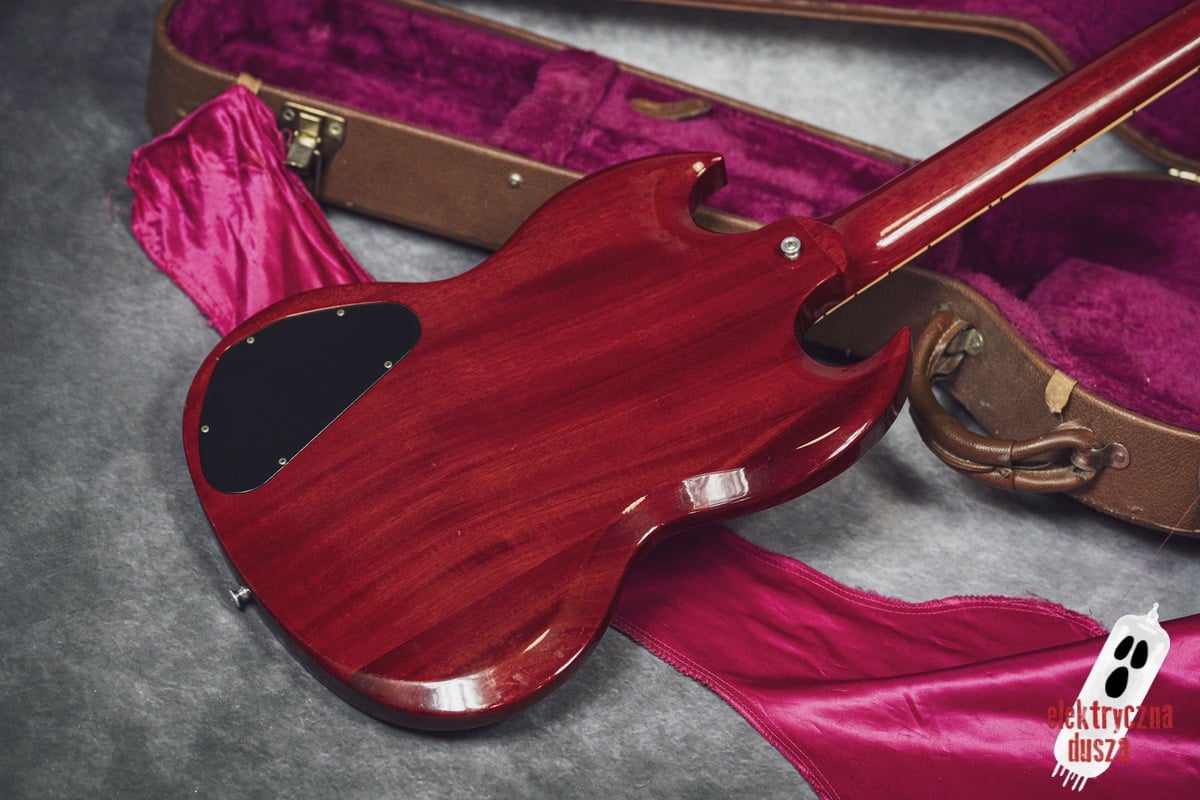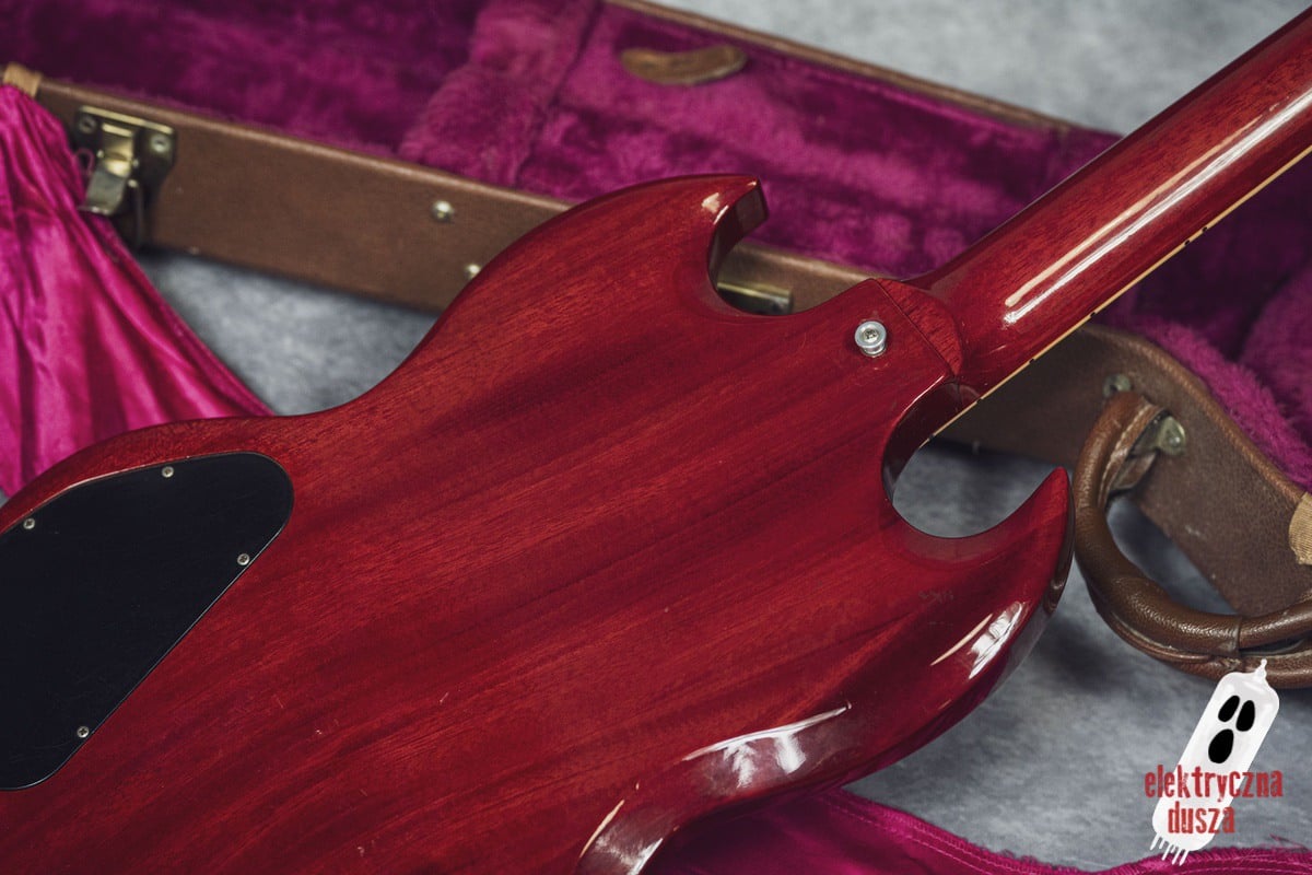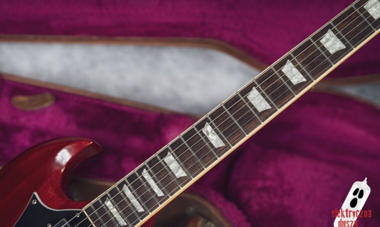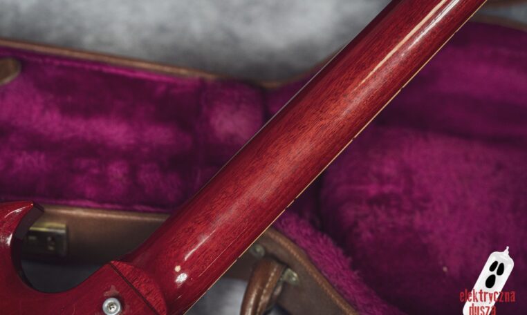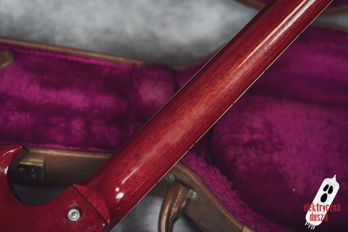 The guitar is 25 years old. It shows normal signs of use like scratches, small dings, and wear, giving it a bit of a vintage vibe. Near the input jack, there is a small crack typical for SG models with a front-mounted jack, but it does not affect performance. Technically, everything works perfectly. The guitar is in original factory condition, set up, and ready to play. The frets were lightly polished and don’t need any work.