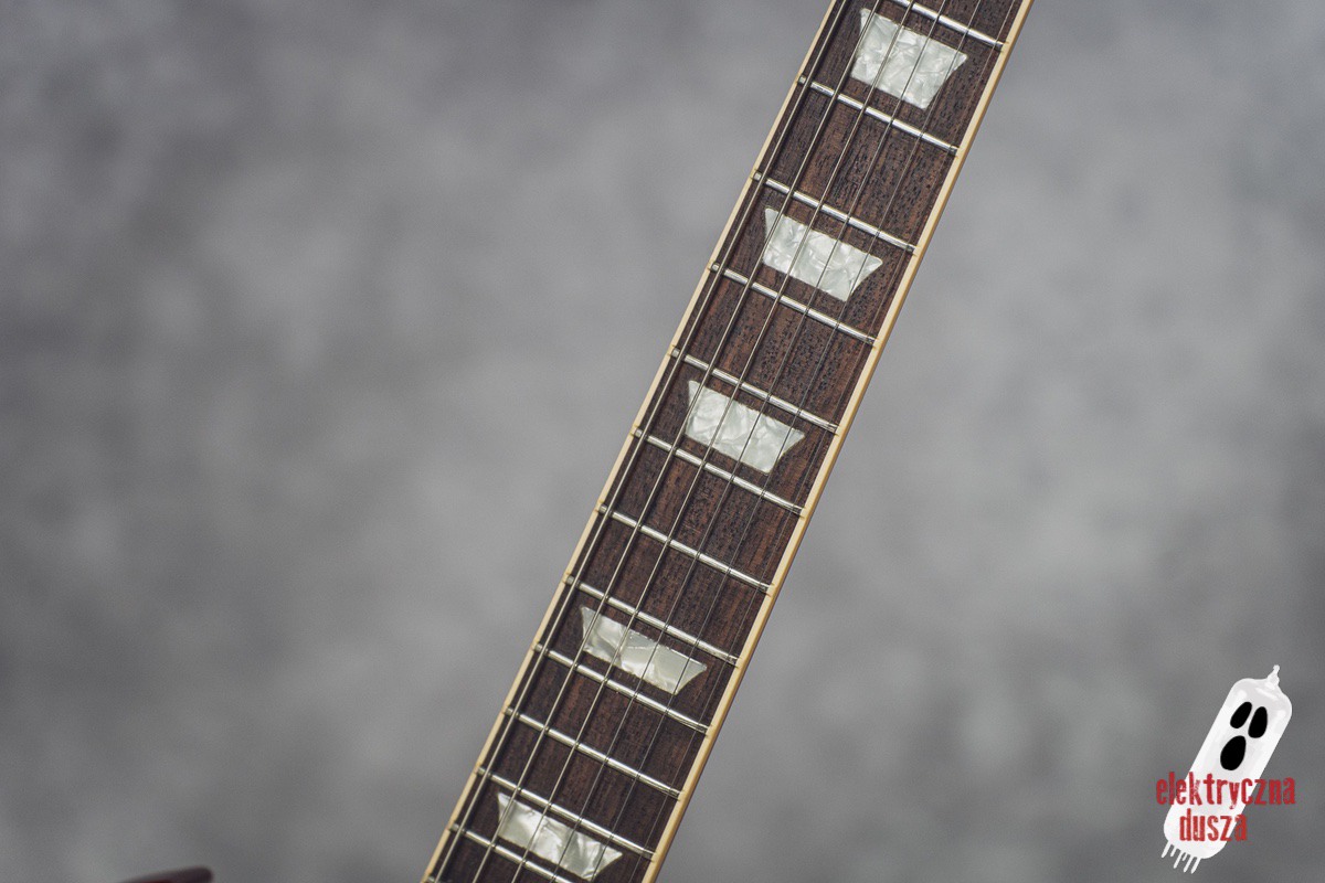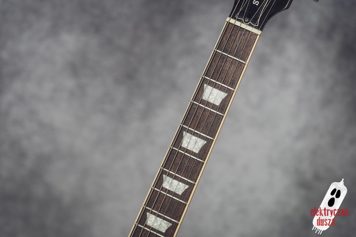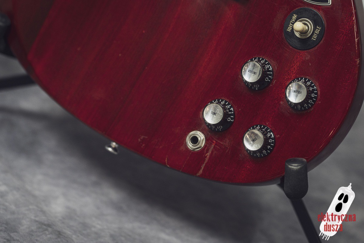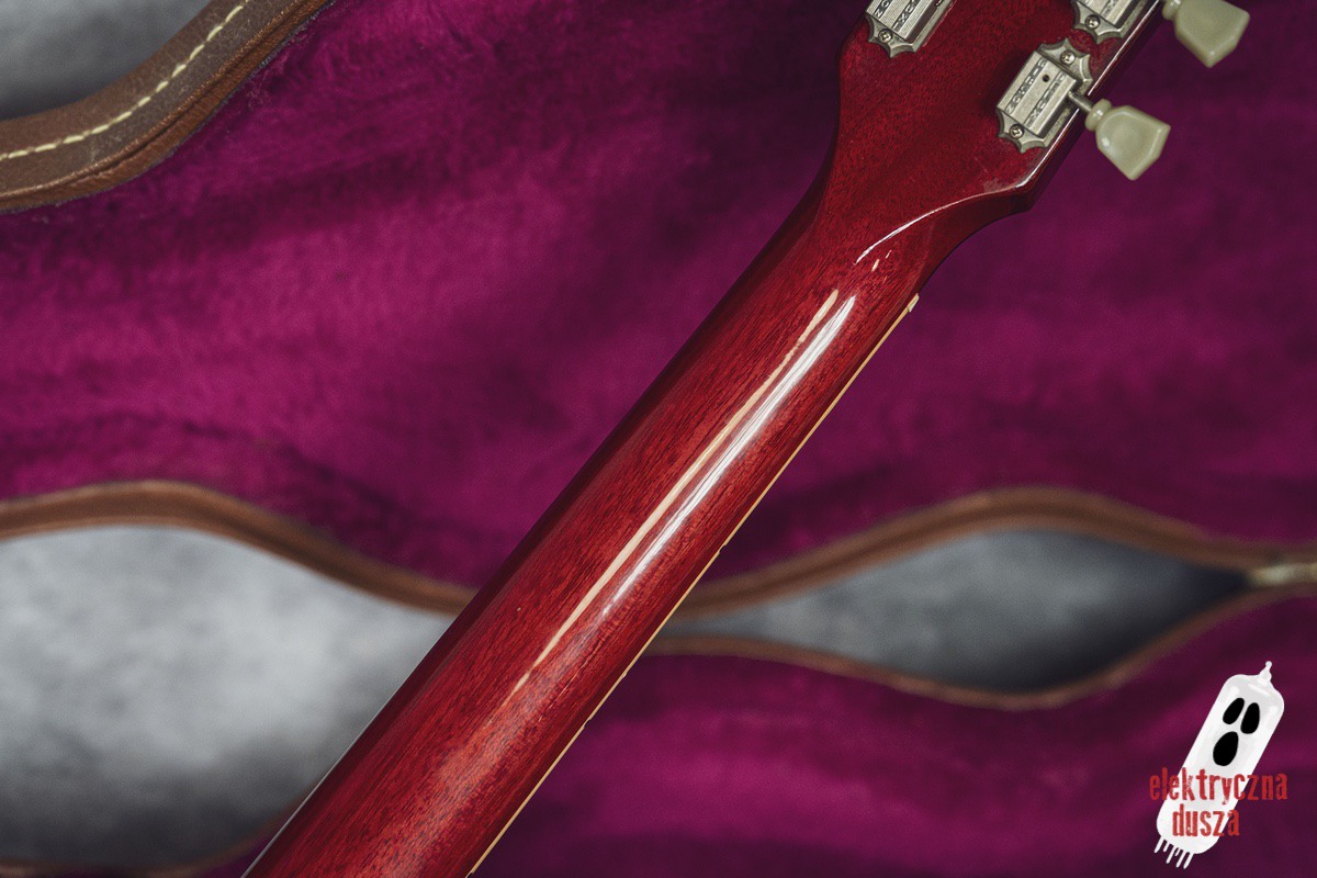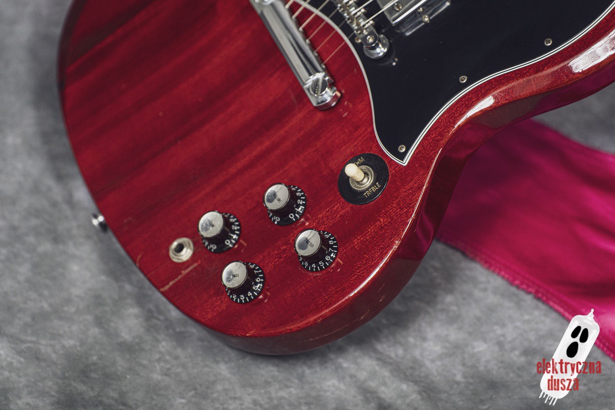 The guitar is 25 years old. It shows normal signs of use like scratches, small dings, and wear, giving it a bit of a vintage vibe. Near the input jack, there is a small crack typical for SG models with a front-mounted jack, but it does not affect performance. Technically, everything works perfectly. The guitar is in original factory condition, set up, and ready to play. The frets were lightly polished and don’t need any work.