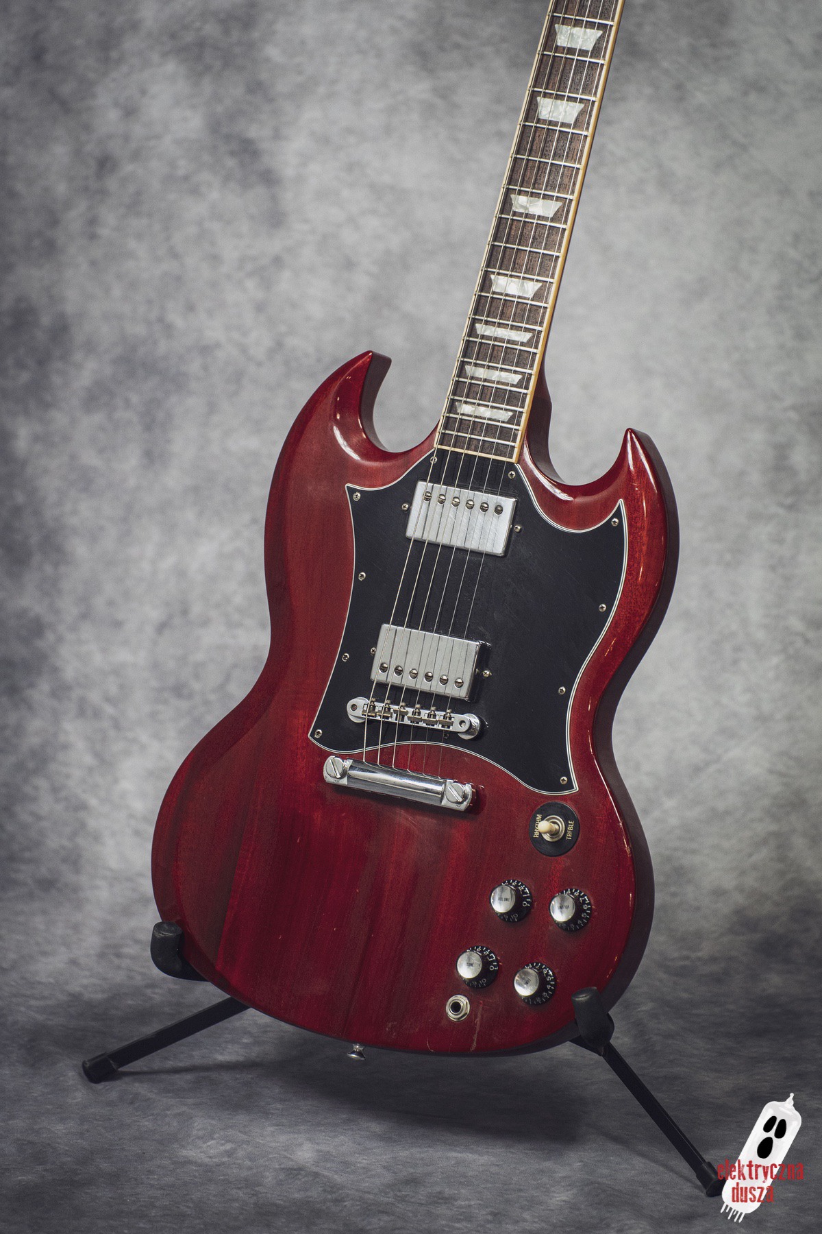 Electric Soul offers a Gibson SG Standard guitar in the classic Heritage Cherry color.