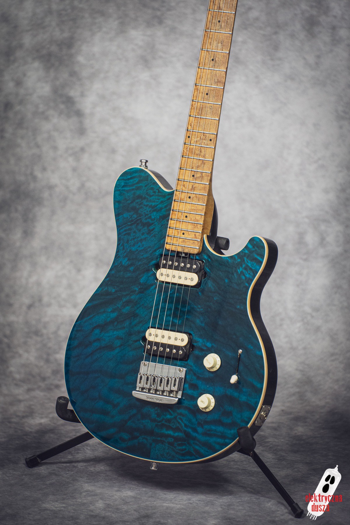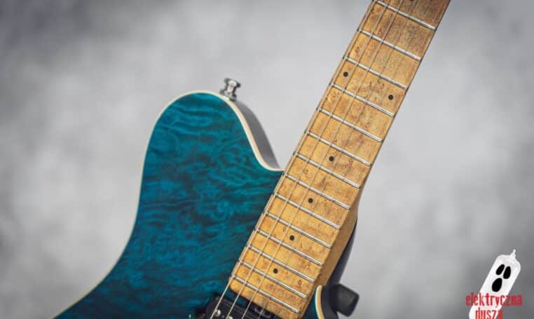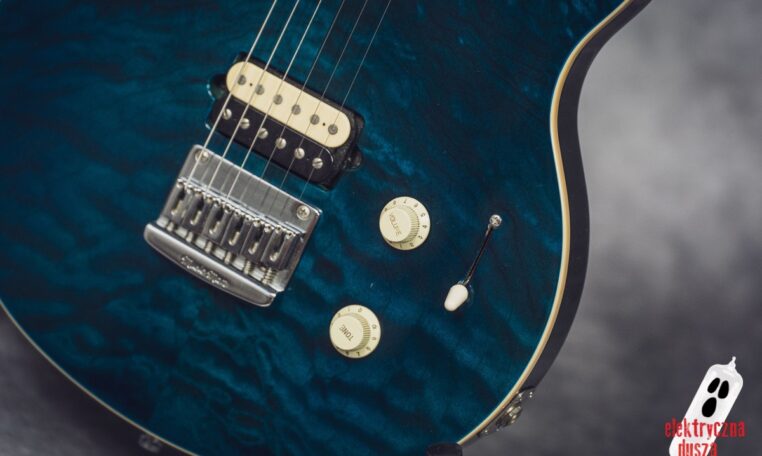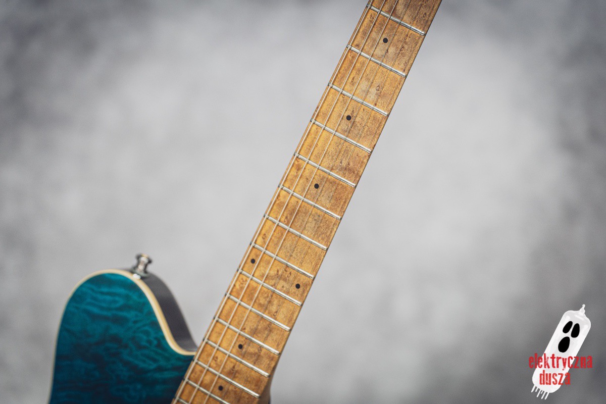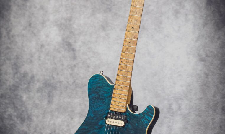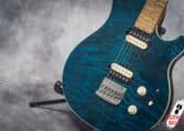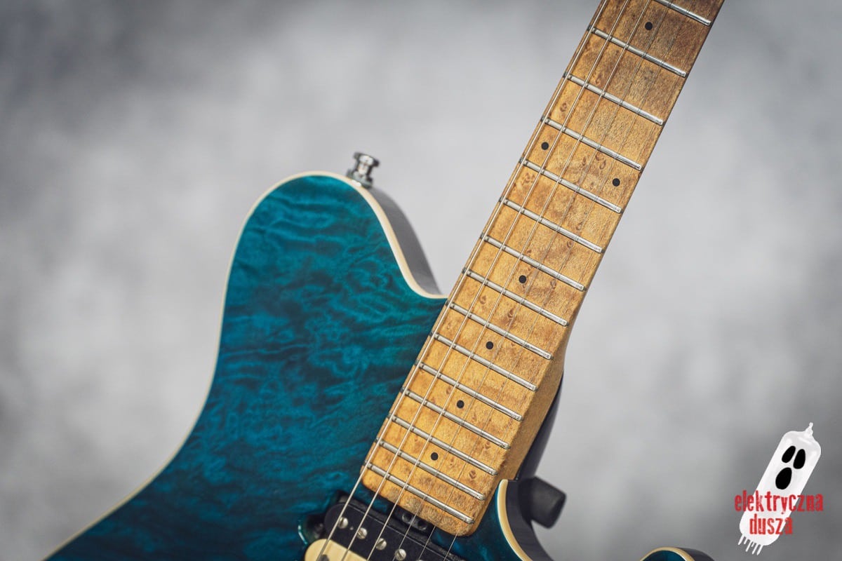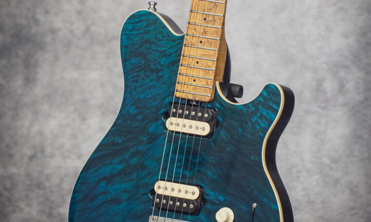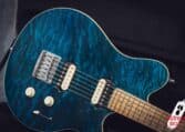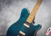 in Translucent Blue finish, with a matching headstock and a beautiful quilted top.