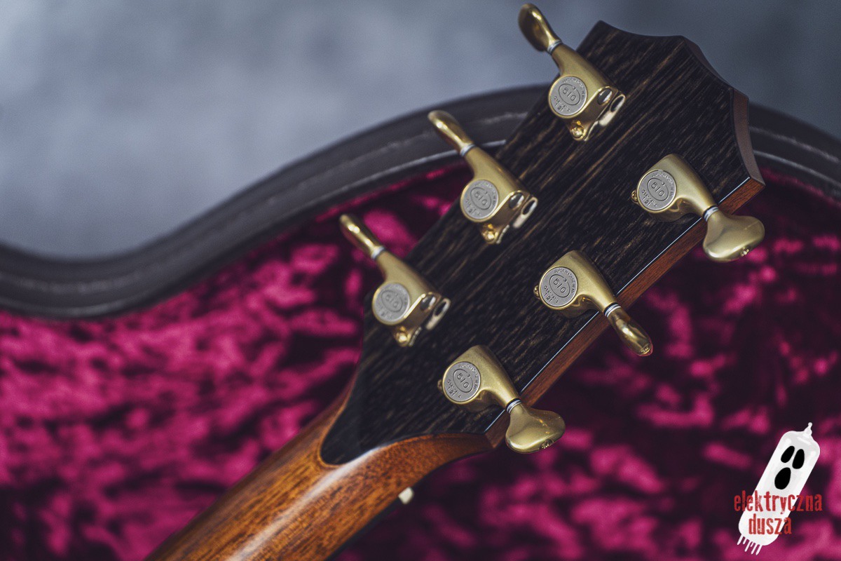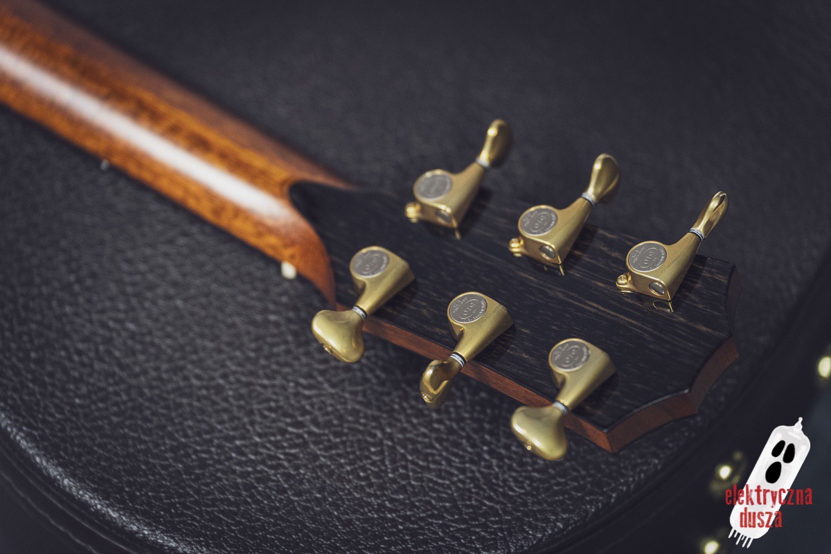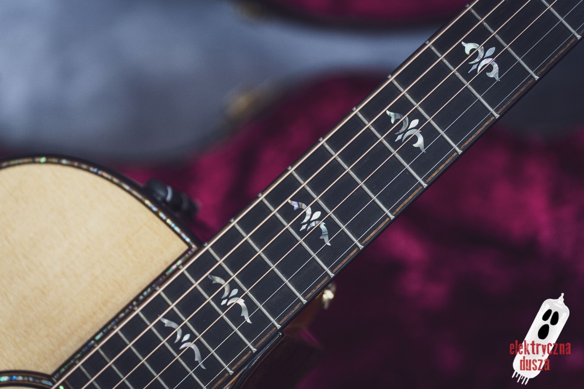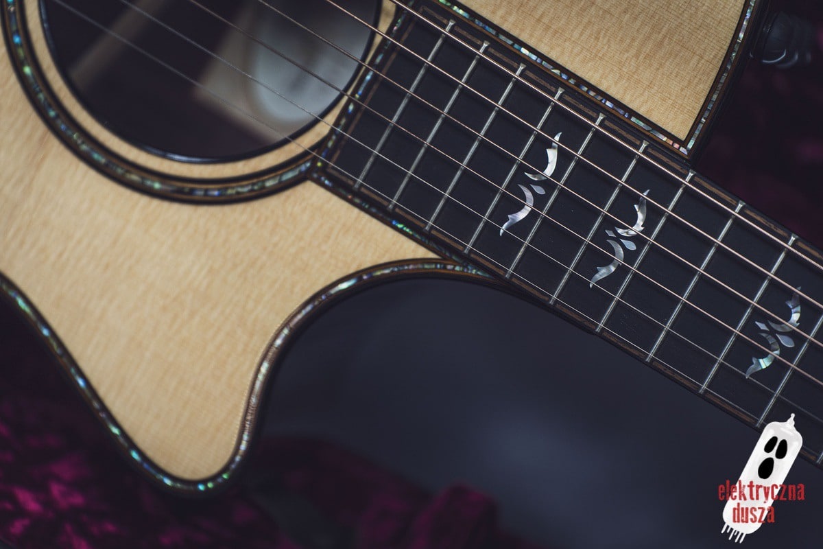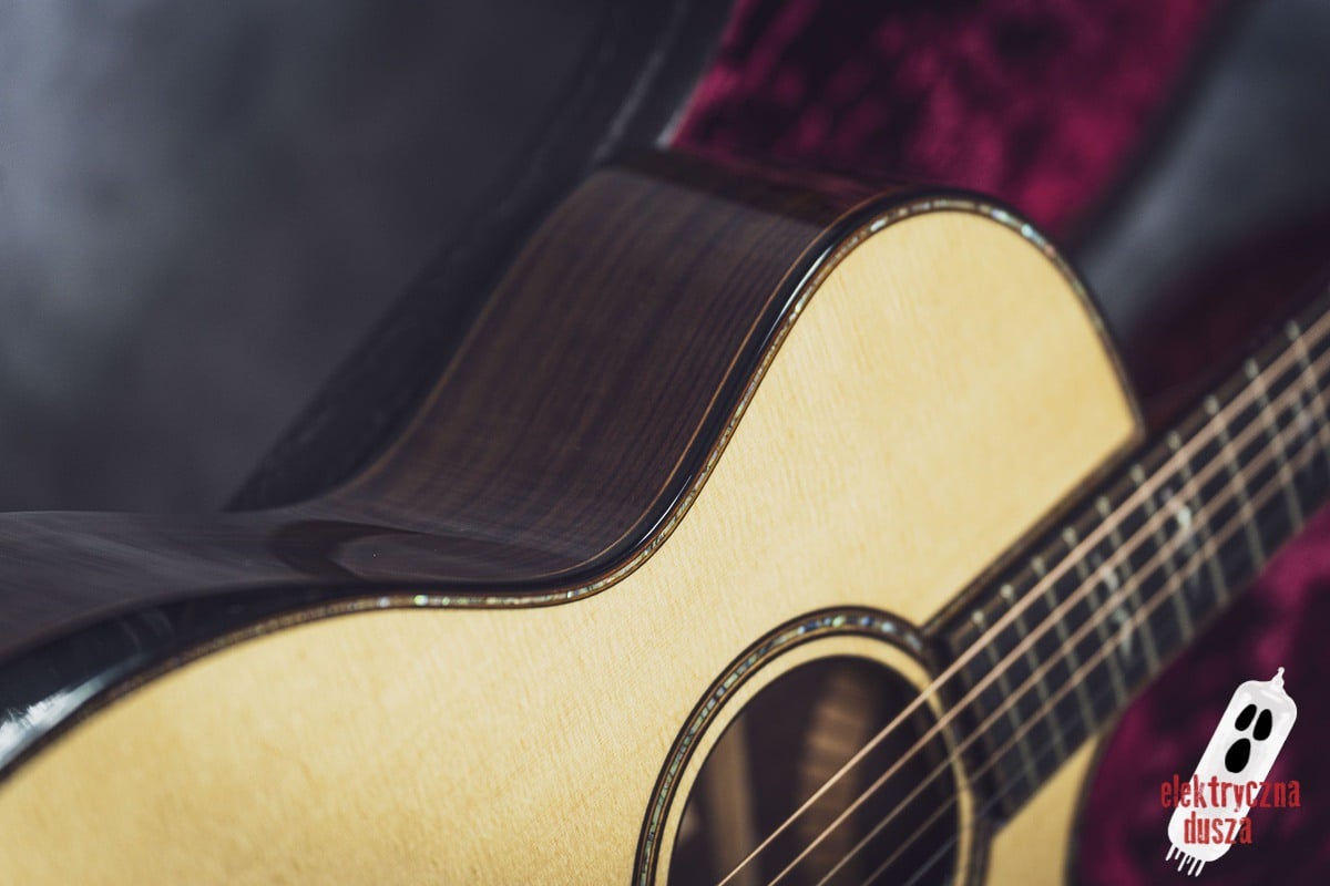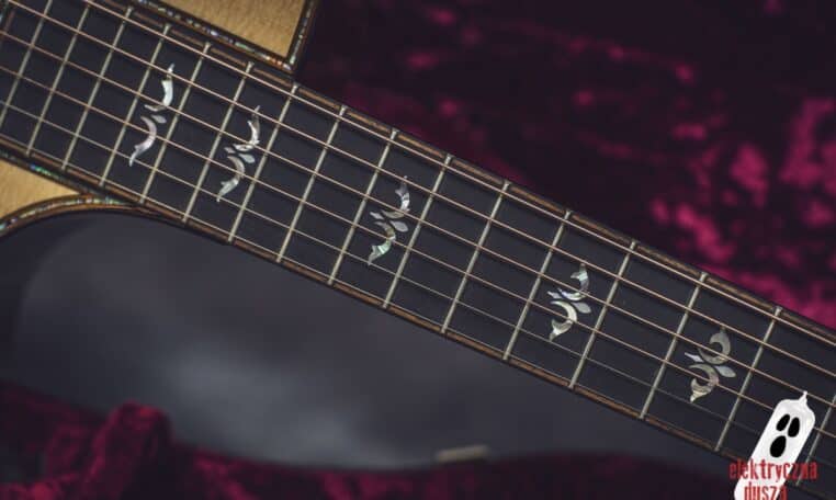 The guitar also stands out for its excellent craftsmanship and very impressive appearance. It includes many beautiful details, such as an ebony armrest, a stinger on the back of the headstock, an elegant multi-layer binding made from different materials, and detailed inlays. It is clear that this is a high-end, no-compromise instrument.