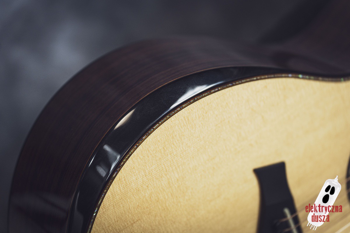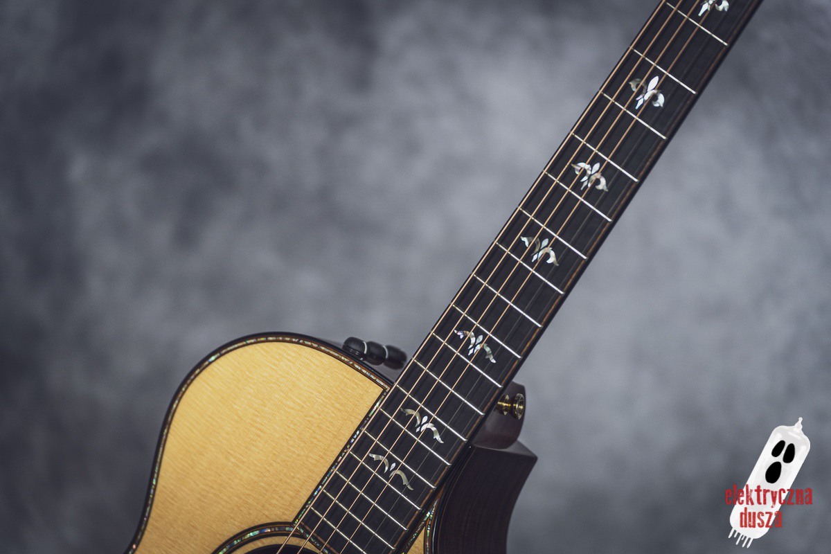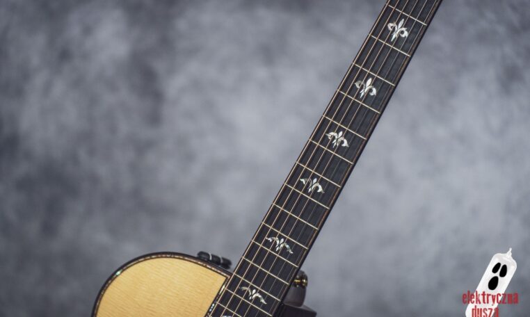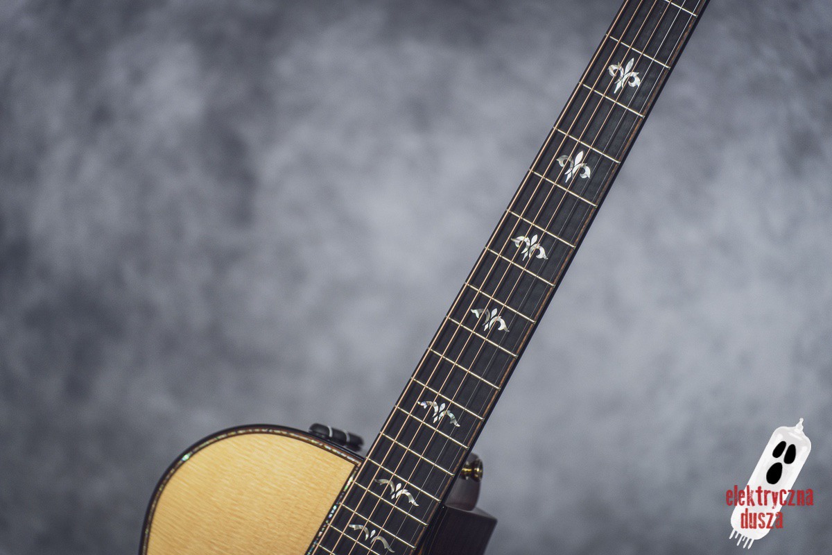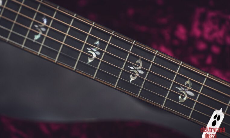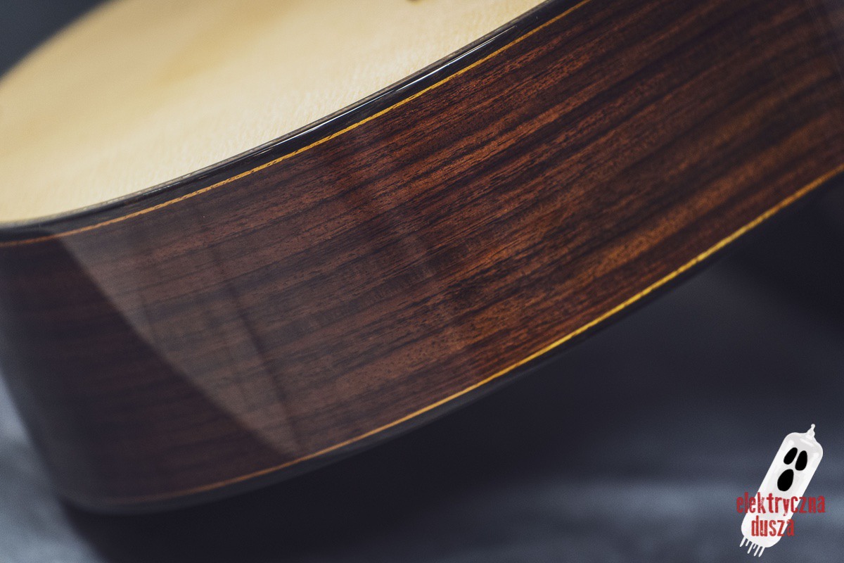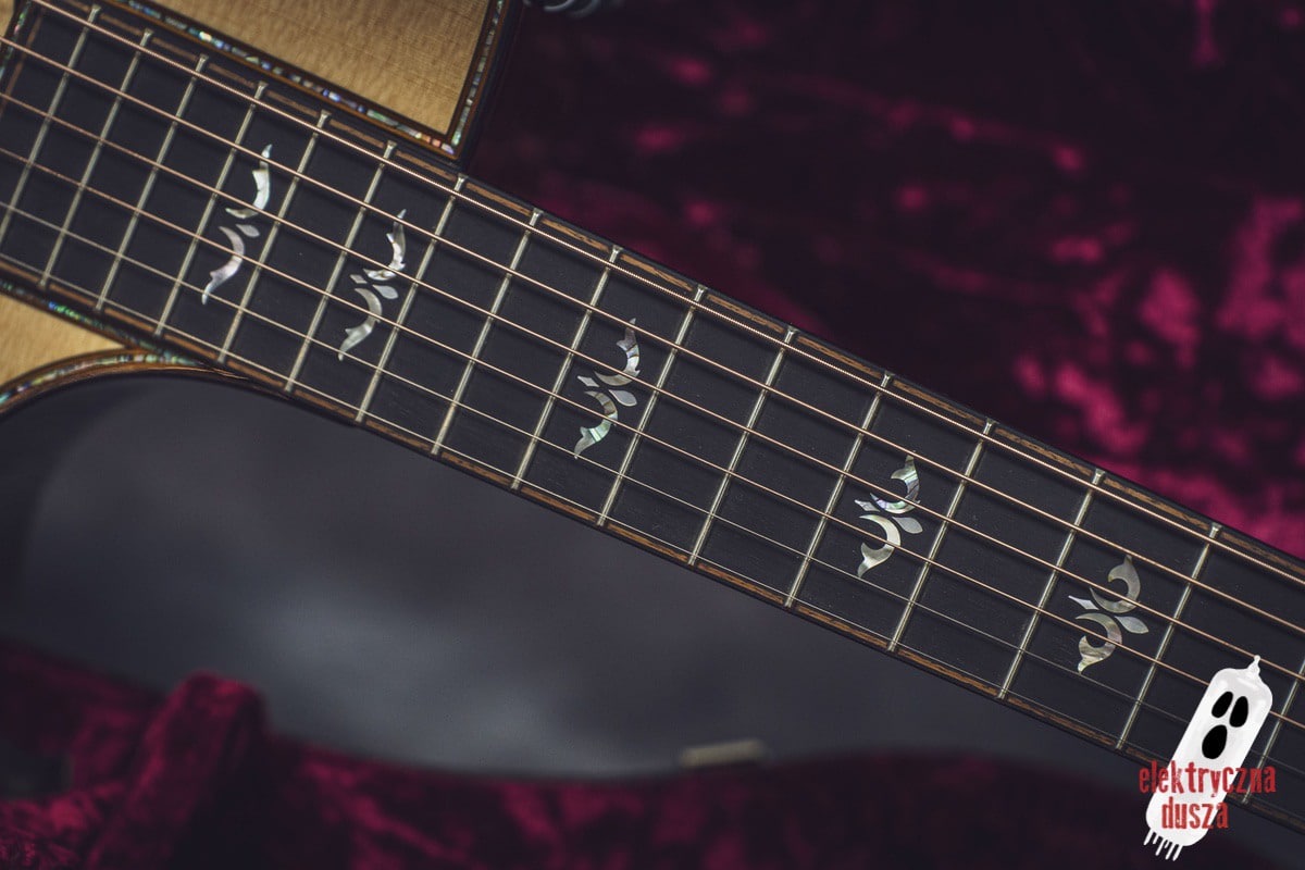 The guitar also stands out for its excellent craftsmanship and very impressive appearance. It includes many beautiful details, such as an ebony armrest, a stinger on the back of the headstock, an elegant multi-layer binding made from different materials, and detailed inlays. It is clear that this is a high-end, no-compromise instrument.