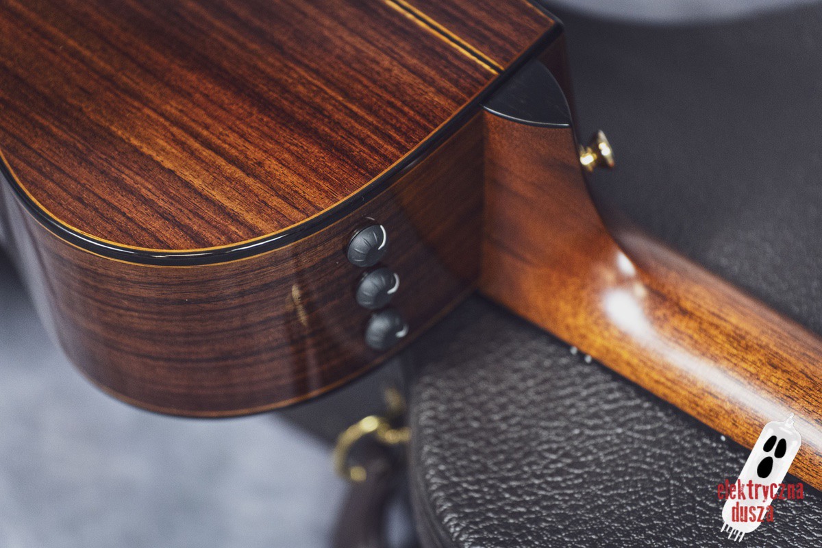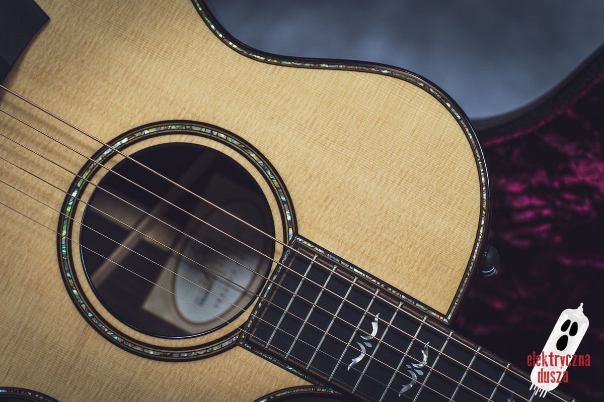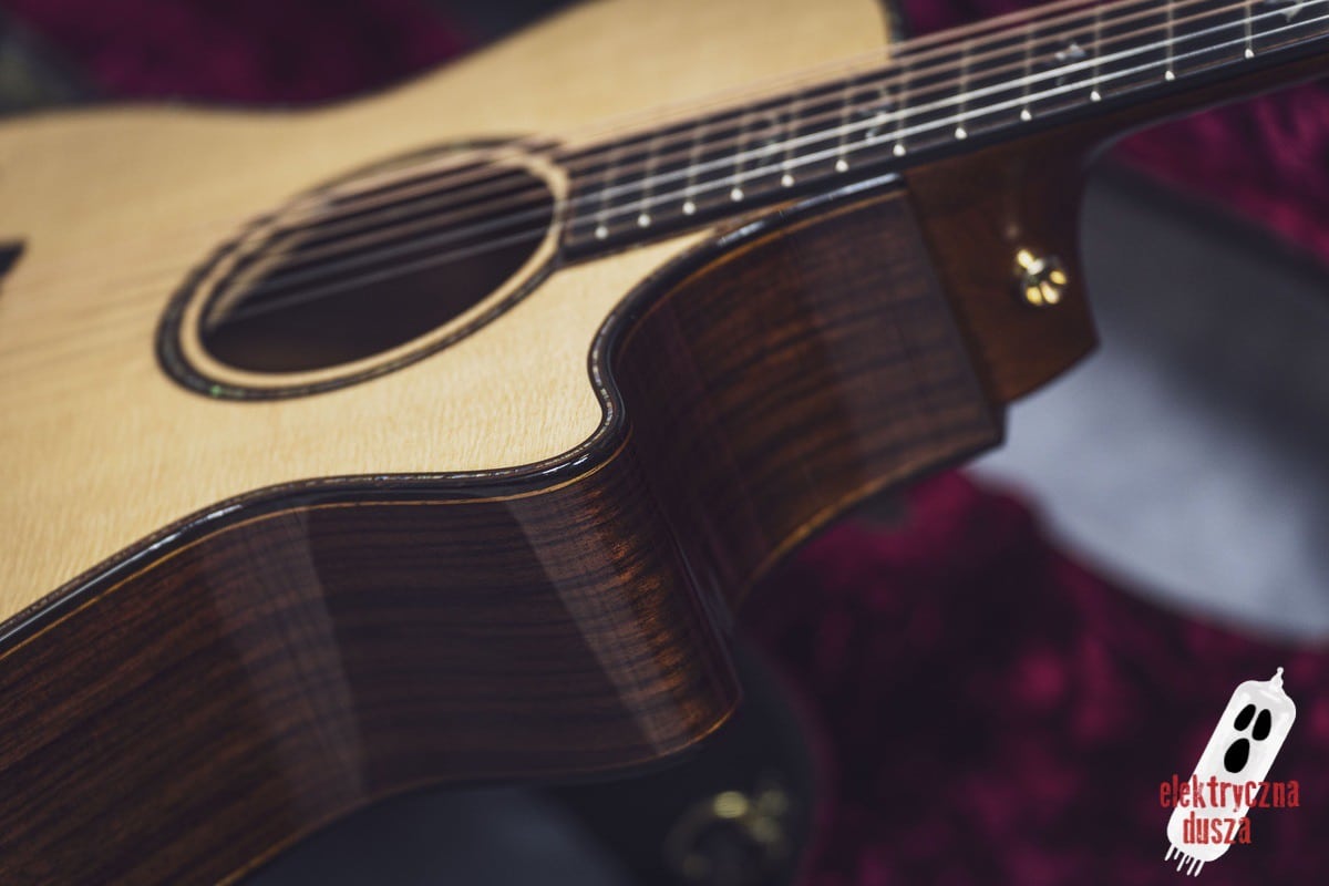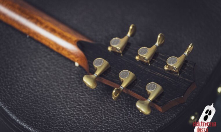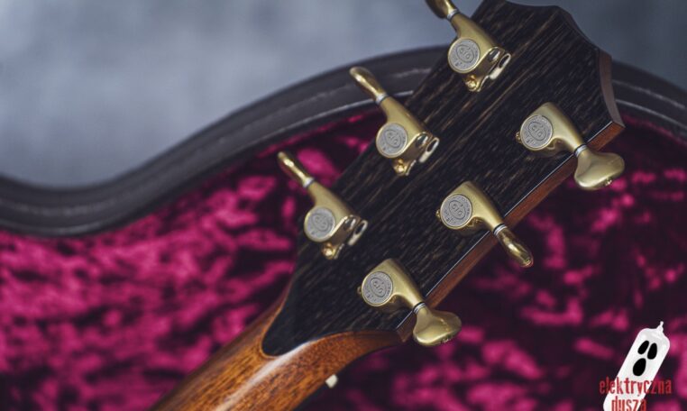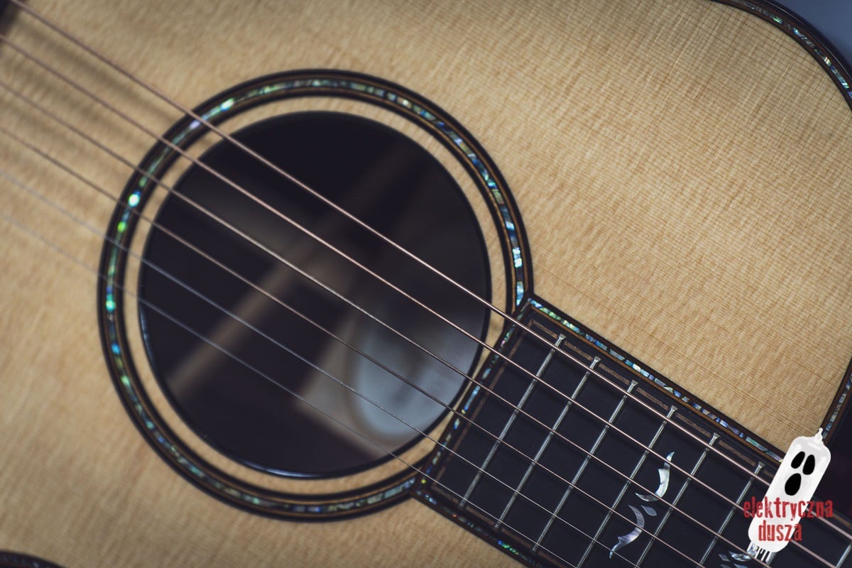 The guitar also stands out for its excellent craftsmanship and very impressive appearance. It includes many beautiful details, such as an ebony armrest, a stinger on the back of the headstock, an elegant multi-layer binding made from different materials, and detailed inlays. It is clear that this is a high-end, no-compromise instrument.