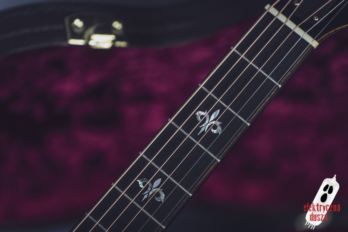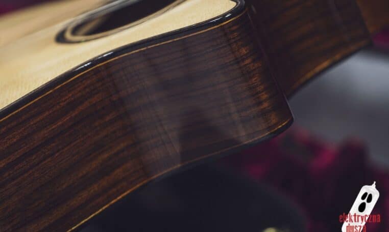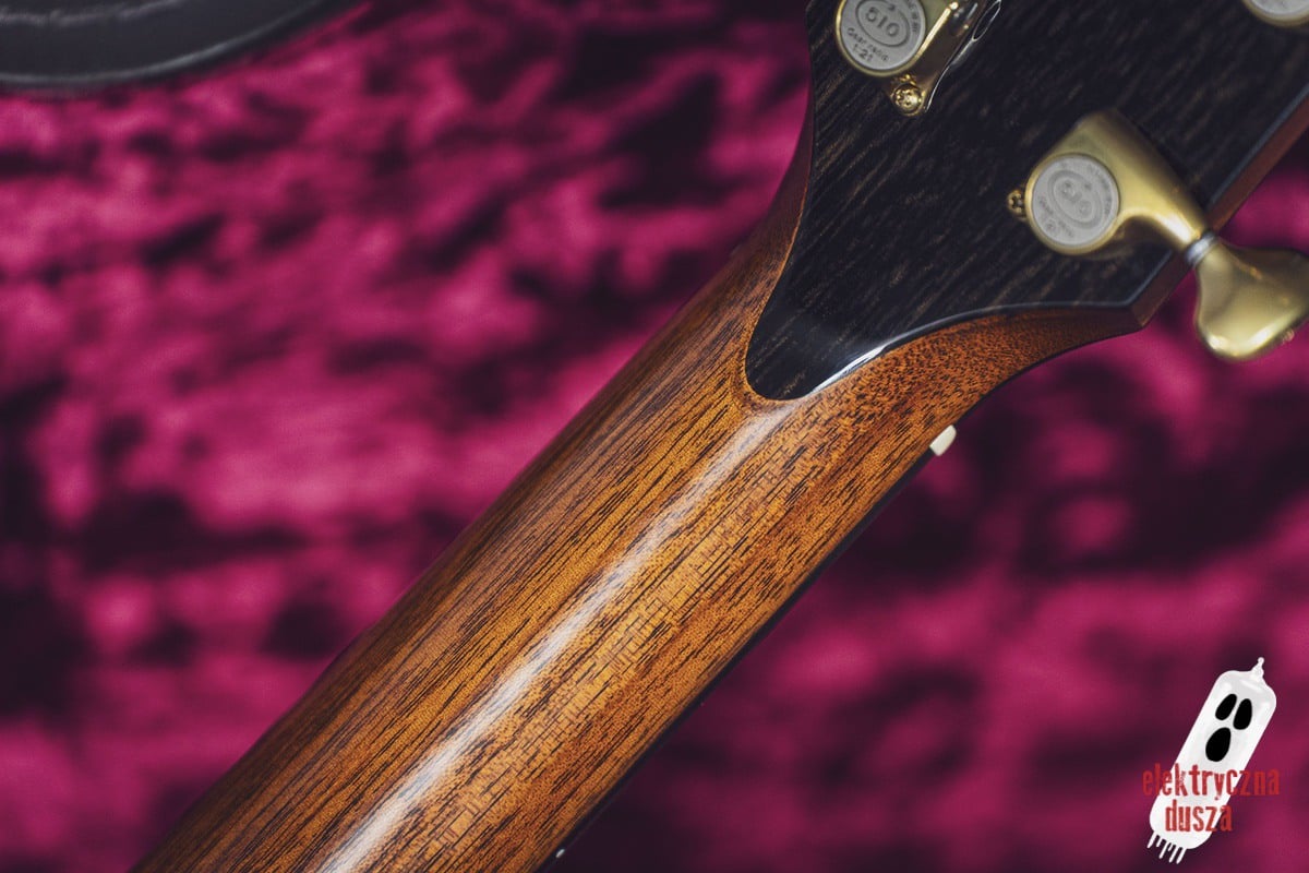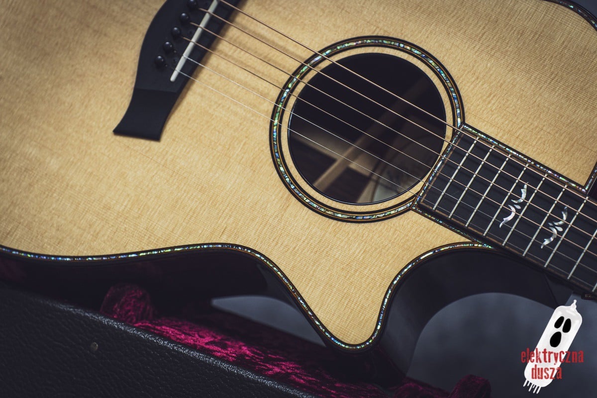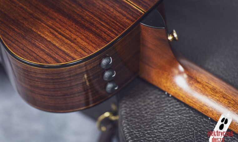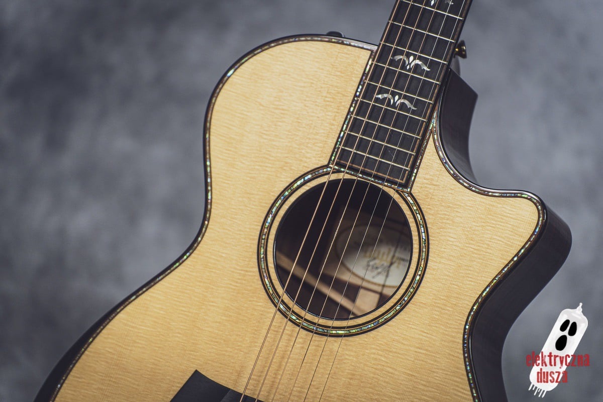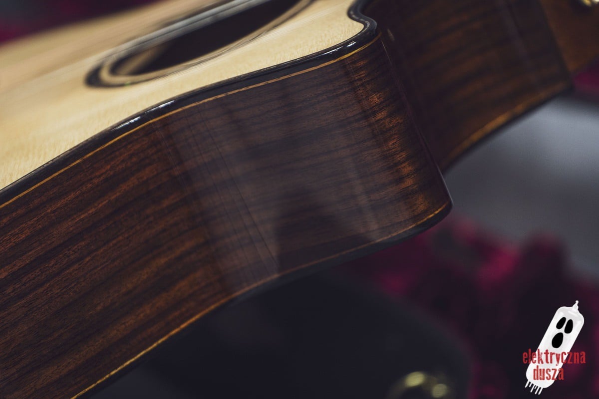 The guitar also stands out for its excellent craftsmanship and very impressive appearance. It includes many beautiful details, such as an ebony armrest, a stinger on the back of the headstock, an elegant multi-layer binding made from different materials, and detailed inlays. It is clear that this is a high-end, no-compromise instrument.