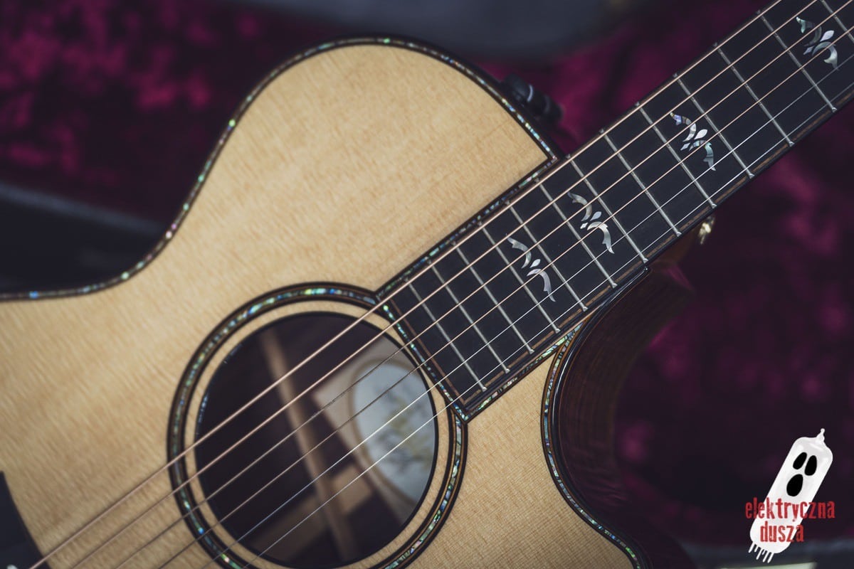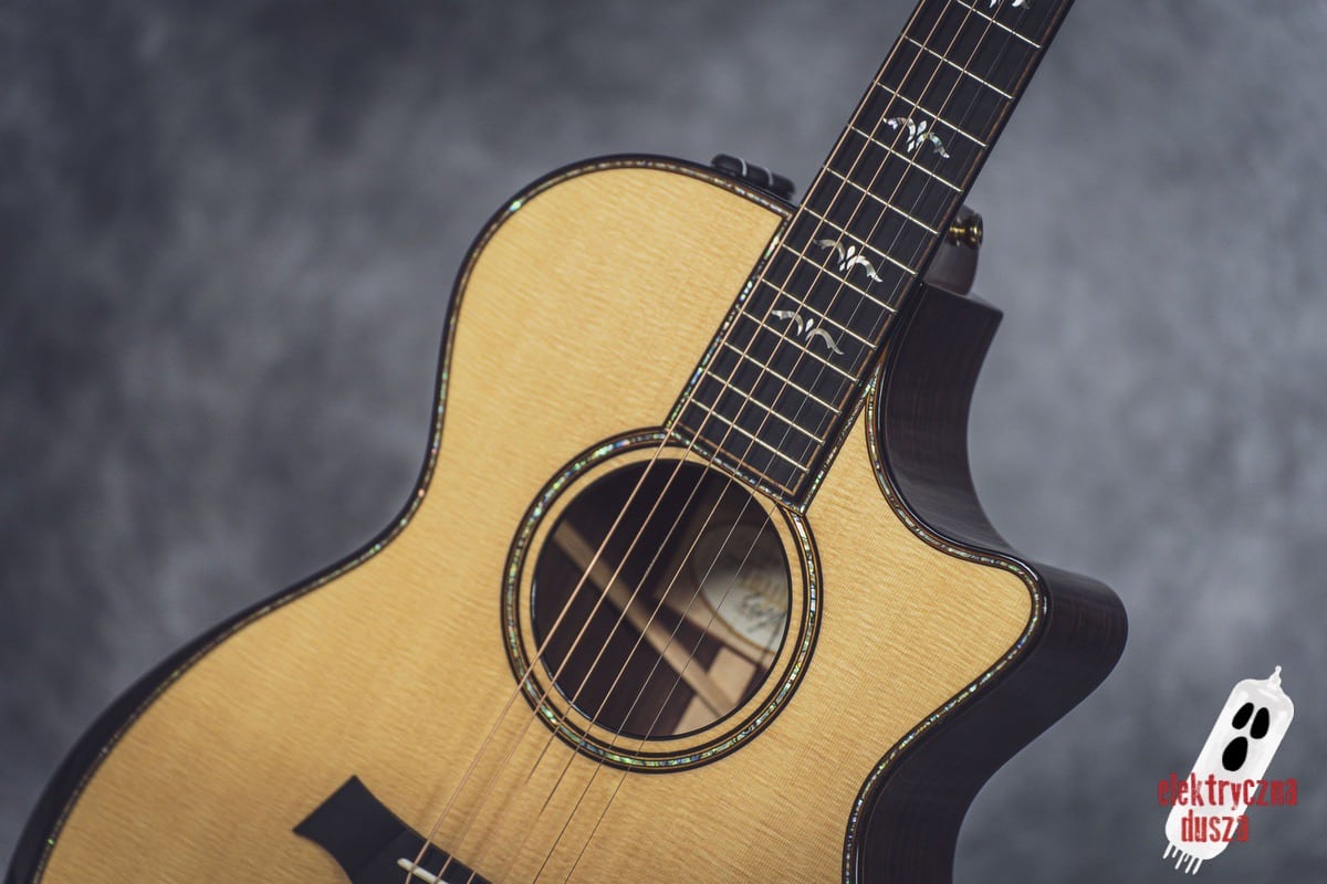 At this price level you get top-quality materials: ebony, rosewood, mahogany, and spruce. The guitar is made entirely from solid wood and includes the professional Taylor Expression System 2 pickup system, one of the best amplification systems for acoustic guitars.
