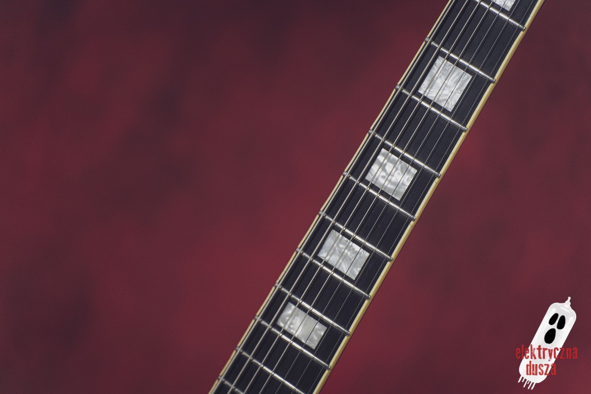 Gitara zachowała typowe dla modelu LPC eleganckie detale wizualne (inkrustacje, bindingi), ale za sprawą czarnego osprzętu jej stylistyka stała się znacznie bardziej agresywna. To jeden z najbardziej drapieżnych wariantów modelu LP na rynku. Jeśli lubicie tego typu konstrukcje, ale jednocześnie chcielibyście nabyć gitarę jednoznacznie metalową zdecydowanie warto rozważyć ten interesujący model.