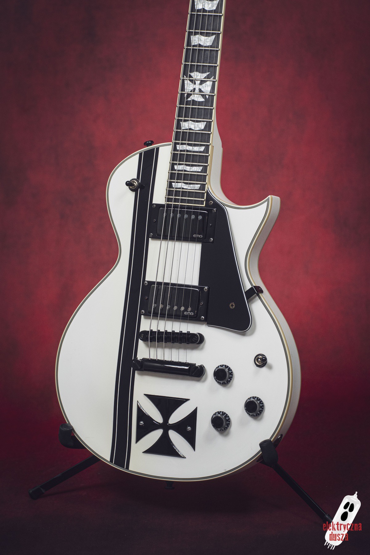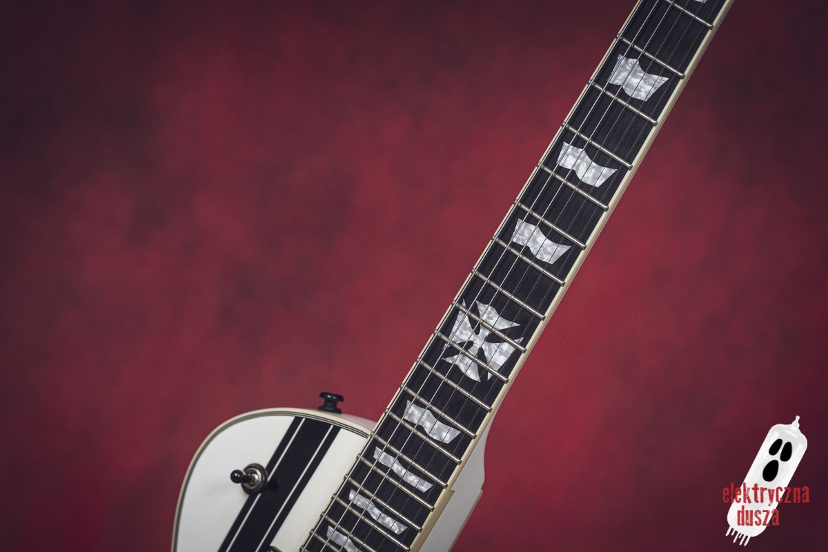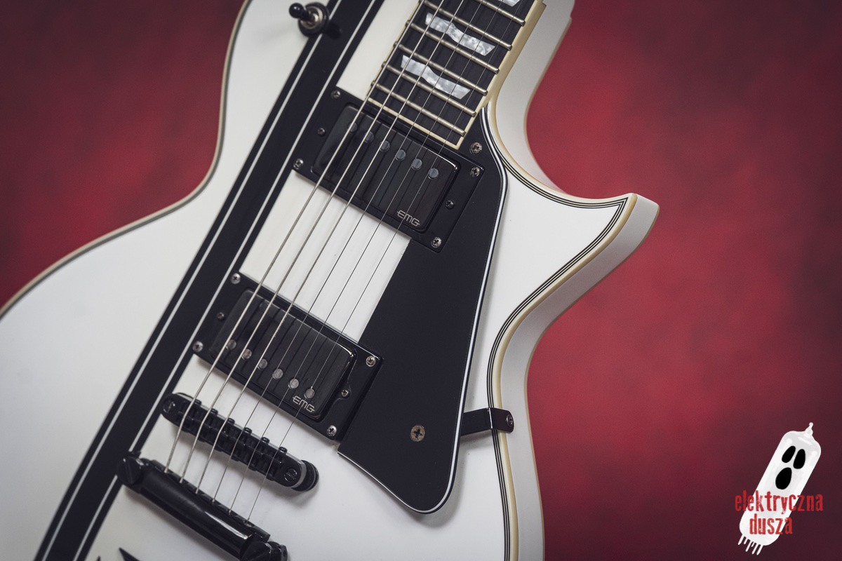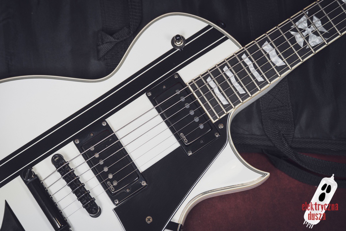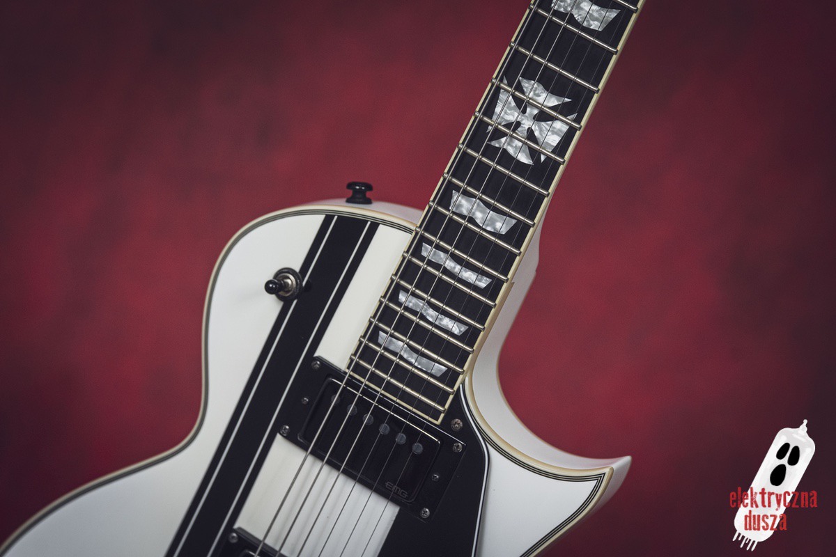 Elektryczna Dusza prezentuje gitarę ESP LTD Iron Cross w wykończeniu Snow White. To oczywiście niezwykle popularna sygnatura legendarnego króla downpickingu – Jamesa Hetfielda z Metalliki.
