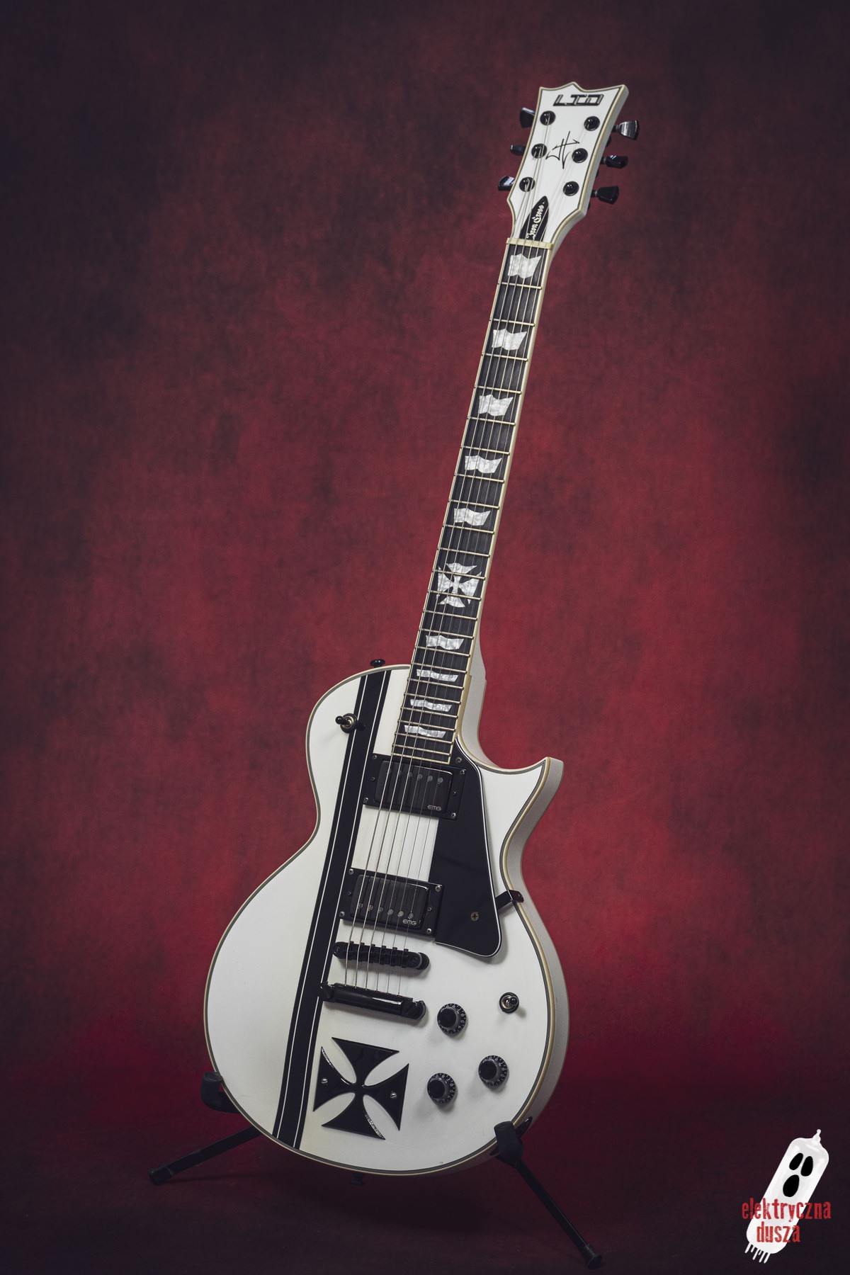 Elektryczna Dusza prezentuje gitarę ESP LTD Iron Cross w wykończeniu Snow White. To oczywiście niezwykle popularna sygnatura legendarnego króla downpickingu – Jamesa Hetfielda z Metalliki.