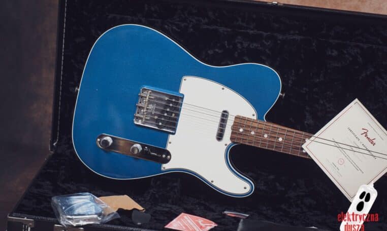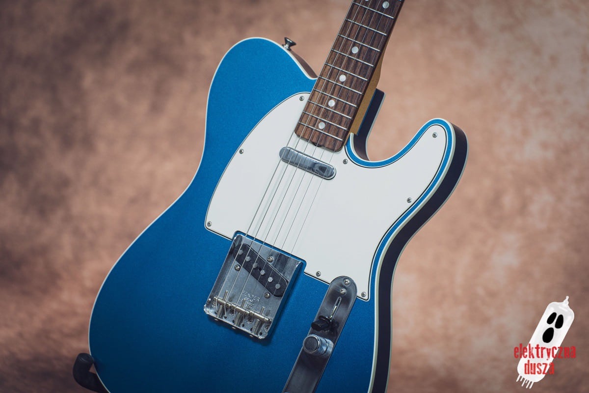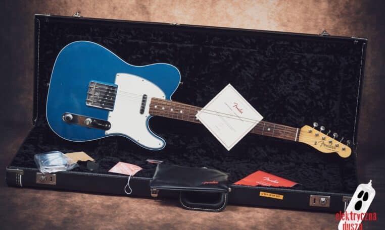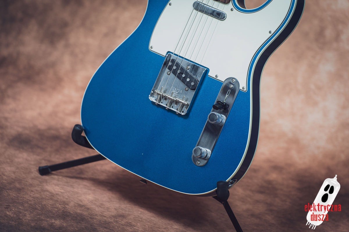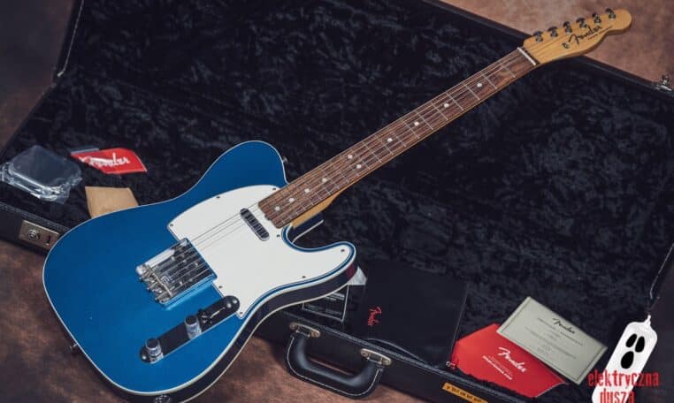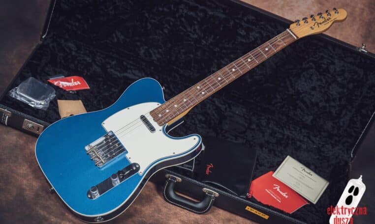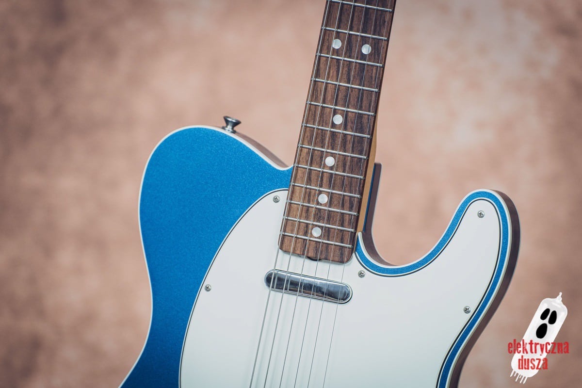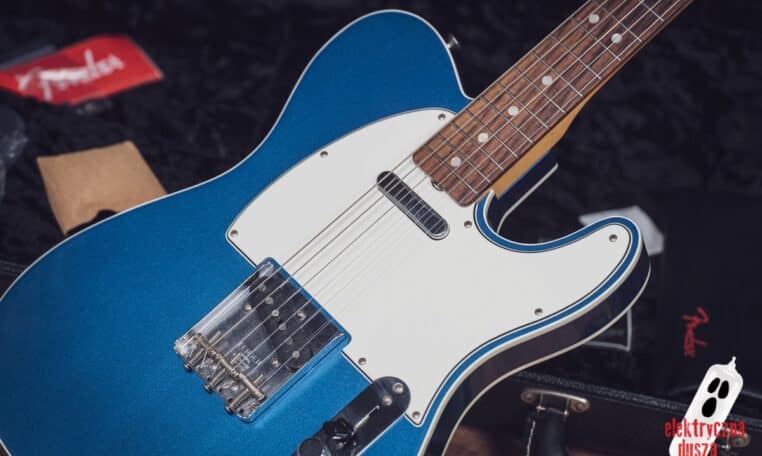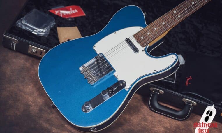 Elektryczna Dusza prezentuje gitarę Fender Telecastar. Jest to model 60’s Custom ze cenionej serii American Original (odpowiednik Am. Vintage), będącej zbiorem reedycji kultowych gitar z ważnych pod względem historycznym roczników. Tym razem sięgamy po luksusowego tele w kultowym kolorze Lake Placid Blue inspirowanego fantastycznym projektem z początku lat 60. Gitara zdecydowanie z górnej póki – charakteryzuje się wyborną specyfikacją i przepięknym wyglądem.