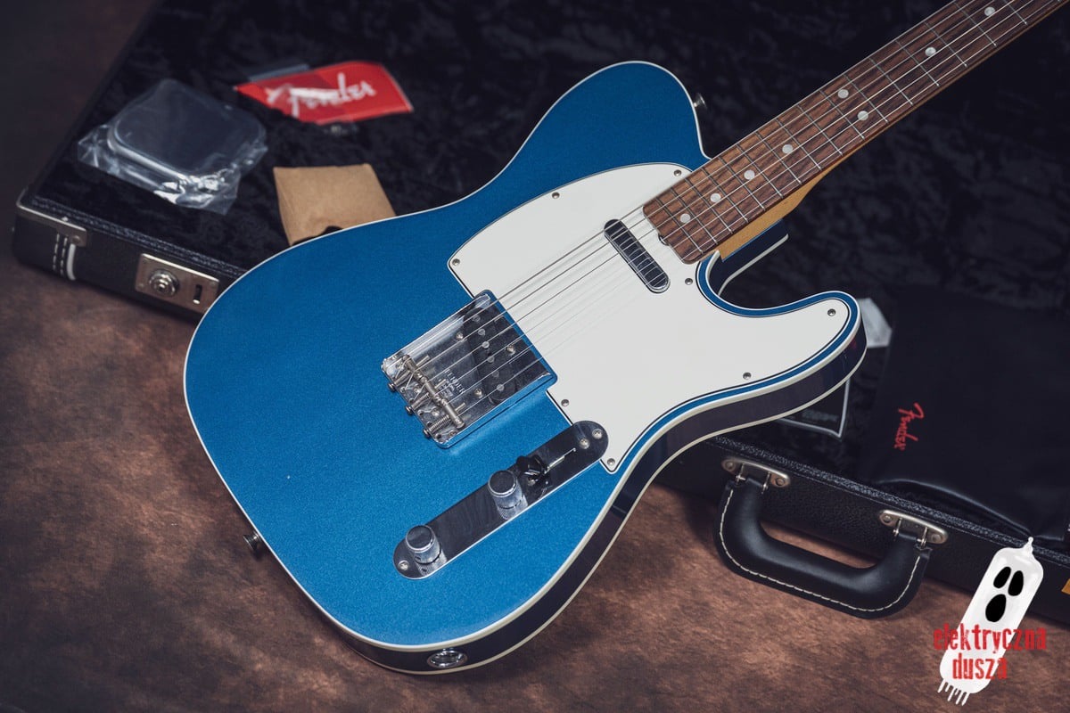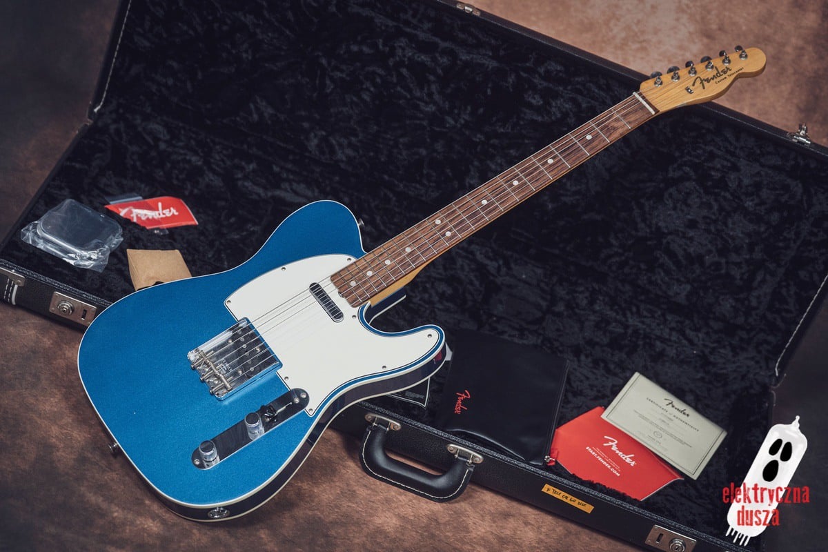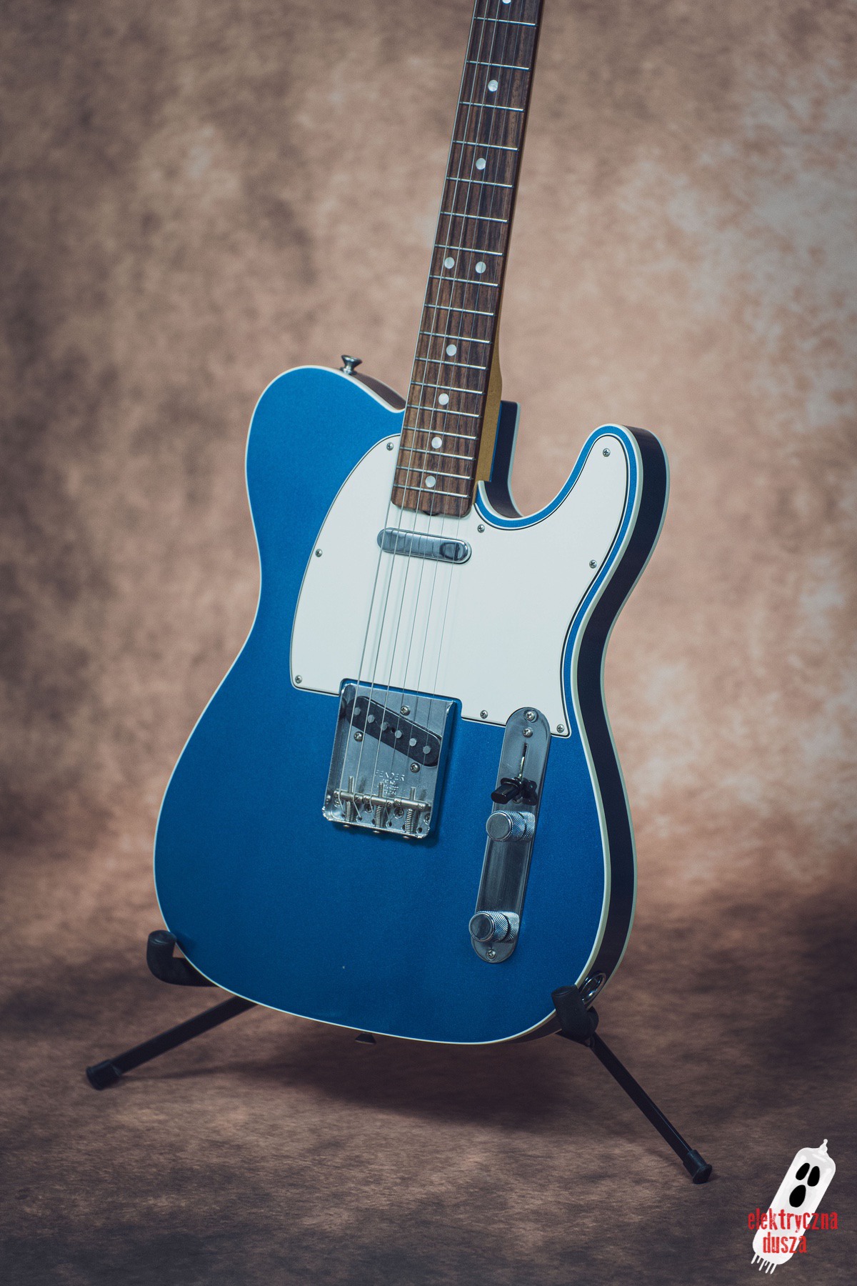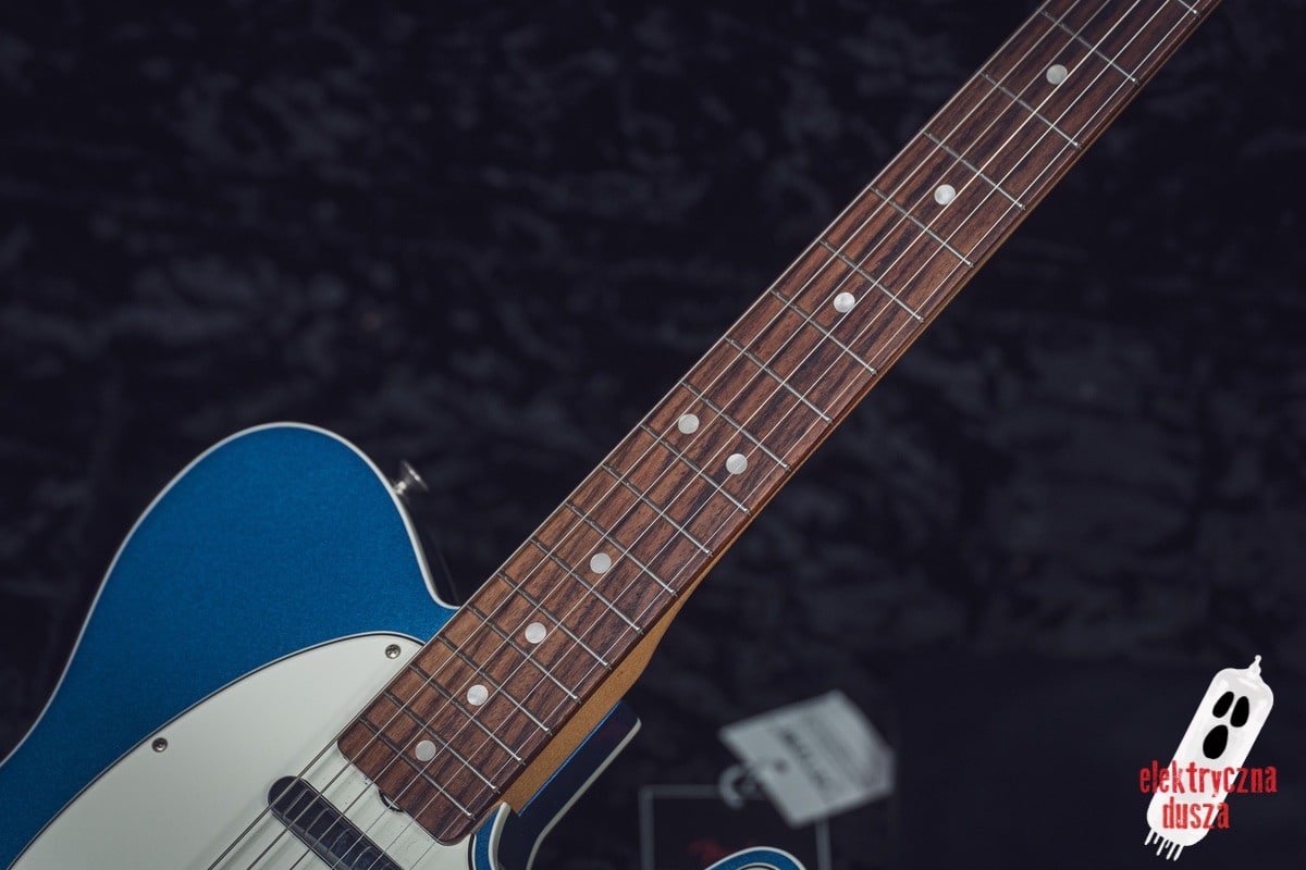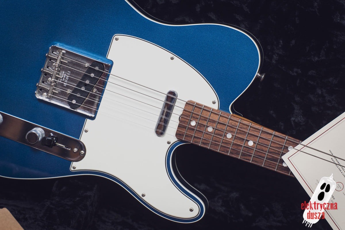 Elektryczna Dusza prezentuje gitarę Fender Telecastar. Jest to model 60’s Custom ze cenionej serii American Original (odpowiednik Am. Vintage), będącej zbiorem reedycji kultowych gitar z ważnych pod względem historycznym roczników. Tym razem sięgamy po luksusowego tele w kultowym kolorze Lake Placid Blue inspirowanego fantastycznym projektem z początku lat 60. Gitara zdecydowanie z górnej póki – charakteryzuje się wyborną specyfikacją i przepięknym wyglądem.