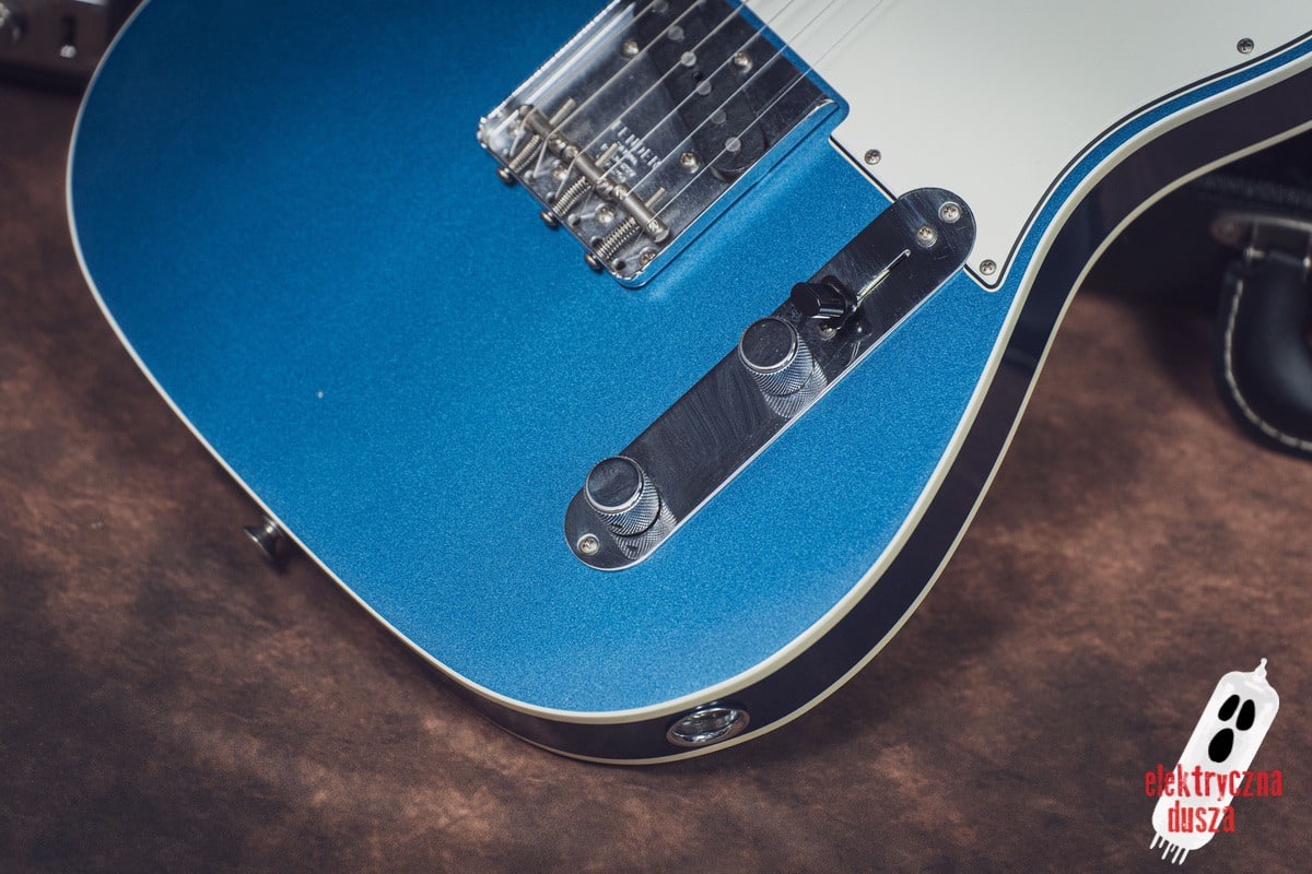 W specyfikacji gitary spotkamy różne smaczki typowe dla epoki, którą została zainspirowana. Nie mogło zabraknąć lakieru nitro, osprzętu typu vintage oraz typowych dla pierwszego okresu produkcji Fendera kalkomanii na lakierze. Całość wygląda naprawdę stylowo. Szczególne wrażenie robi tak charakterystyczny dla tego modelu binding otaczający korpus zarówno z przodu jak i z tyłu. Ten utrzymany w gibsonowskim stylu dodatek skutecznie pracuje na dopisek Custom obecny na główce. Gitara posiada oczywiście zawodową, amerykańską elektronikę. Pickupy Pure 64 Grey Bottom to jedne z najlepszych singli do tele. Brzmią kapitalnie i pasują doskonale do tego instrumentu.