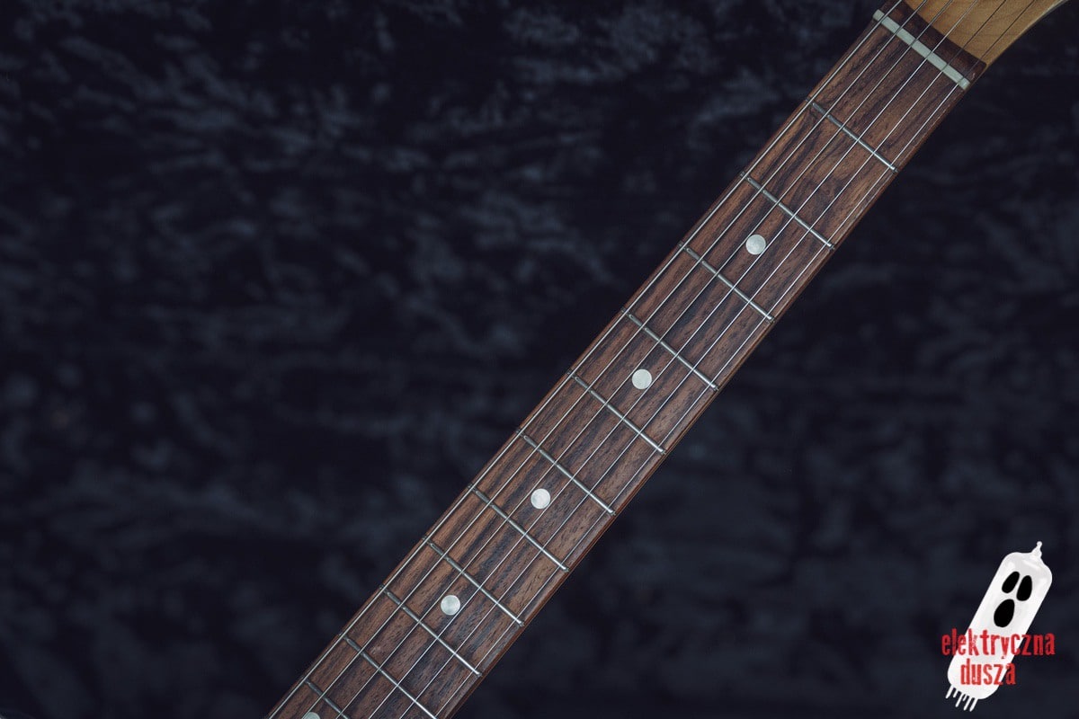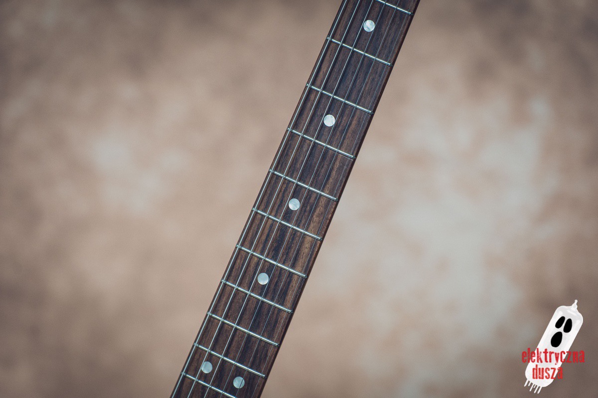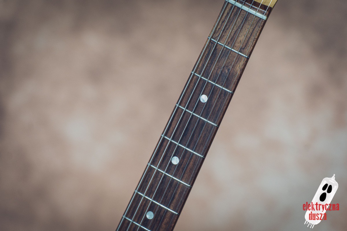 Instrument ma charakterystyczny dla tamtego okresu olchowy korpus i dość smukły, szczególnie wygodny gryf o profilu C. Zgodnie z duchem epoki do specyfikacji trafiła także palisandrowa podstrunnica. Nadaje ona gitarze okrągłe, mniej ostre brzmienie o zdecydowanie szerszym zastosowaniu niż jazgoczące maszynki do country z początku lat 50. To tele o łagodnej, harfowej barwie (nieco w kierunku strata), które doskonale sprawdzi się w wielu stylach muzycznych zarówno tych staroświeckich jak i zupełnie współczesnych. Warto dodać, że oryginalny Telecaster Custom z lat 60 miał radius 7.25 cala, który nie wszystkim gitarzystom odpowiada. Współczesna wersja tej gitary ma poprawioną ergonomię i znajdziemy w niej radius 9.5.