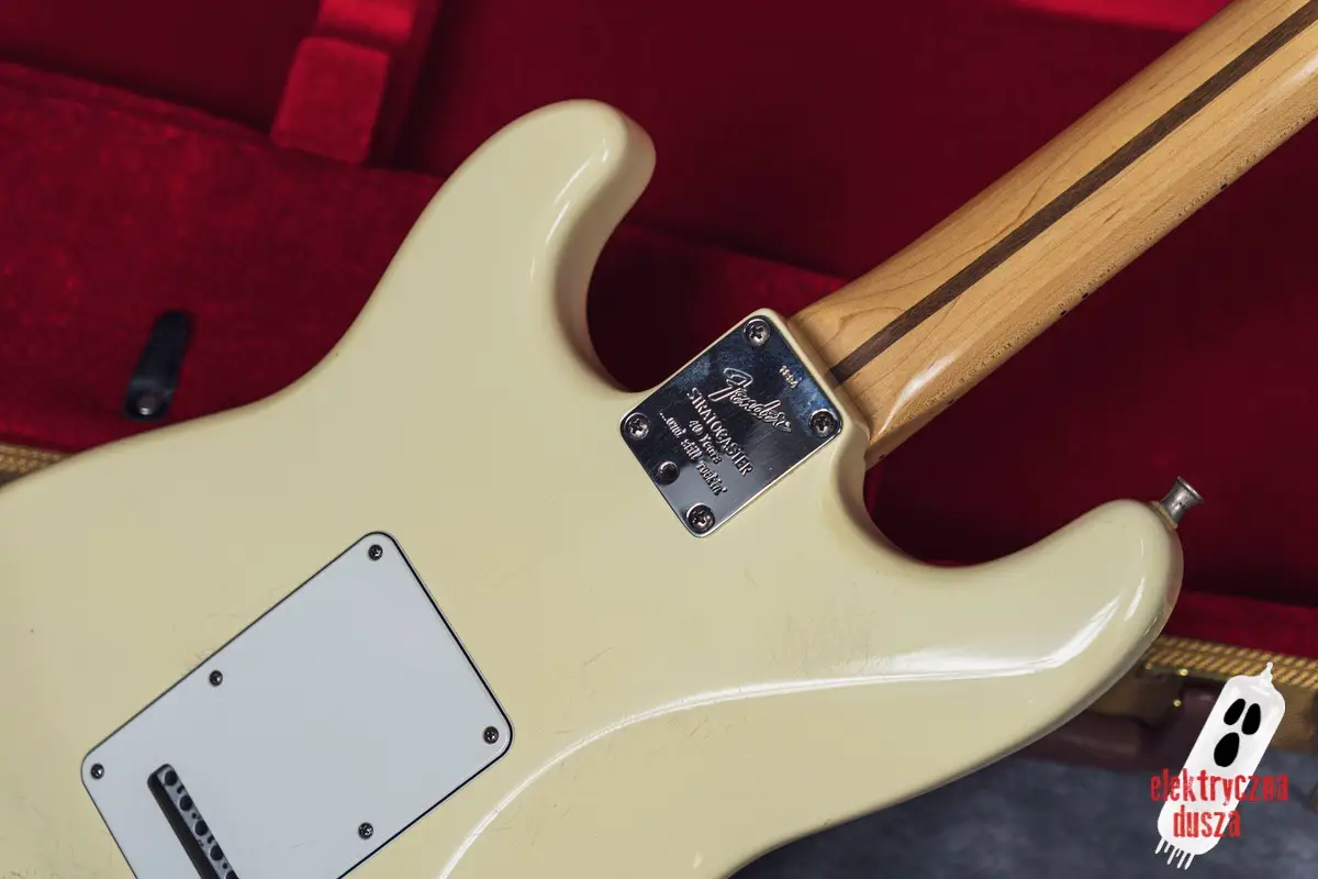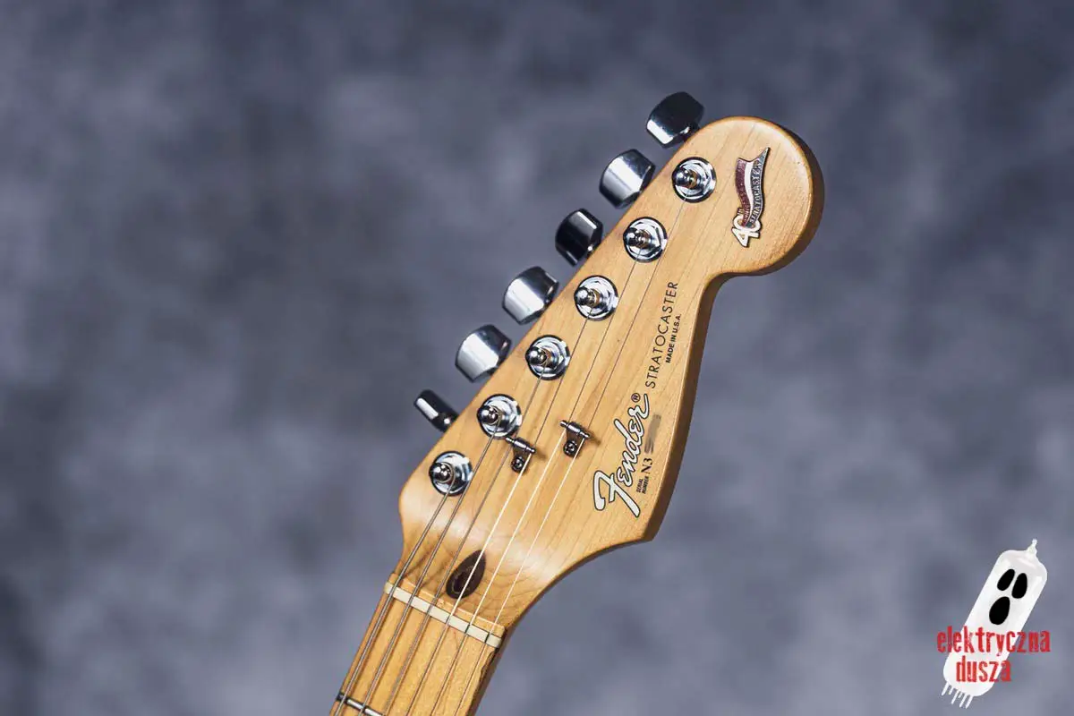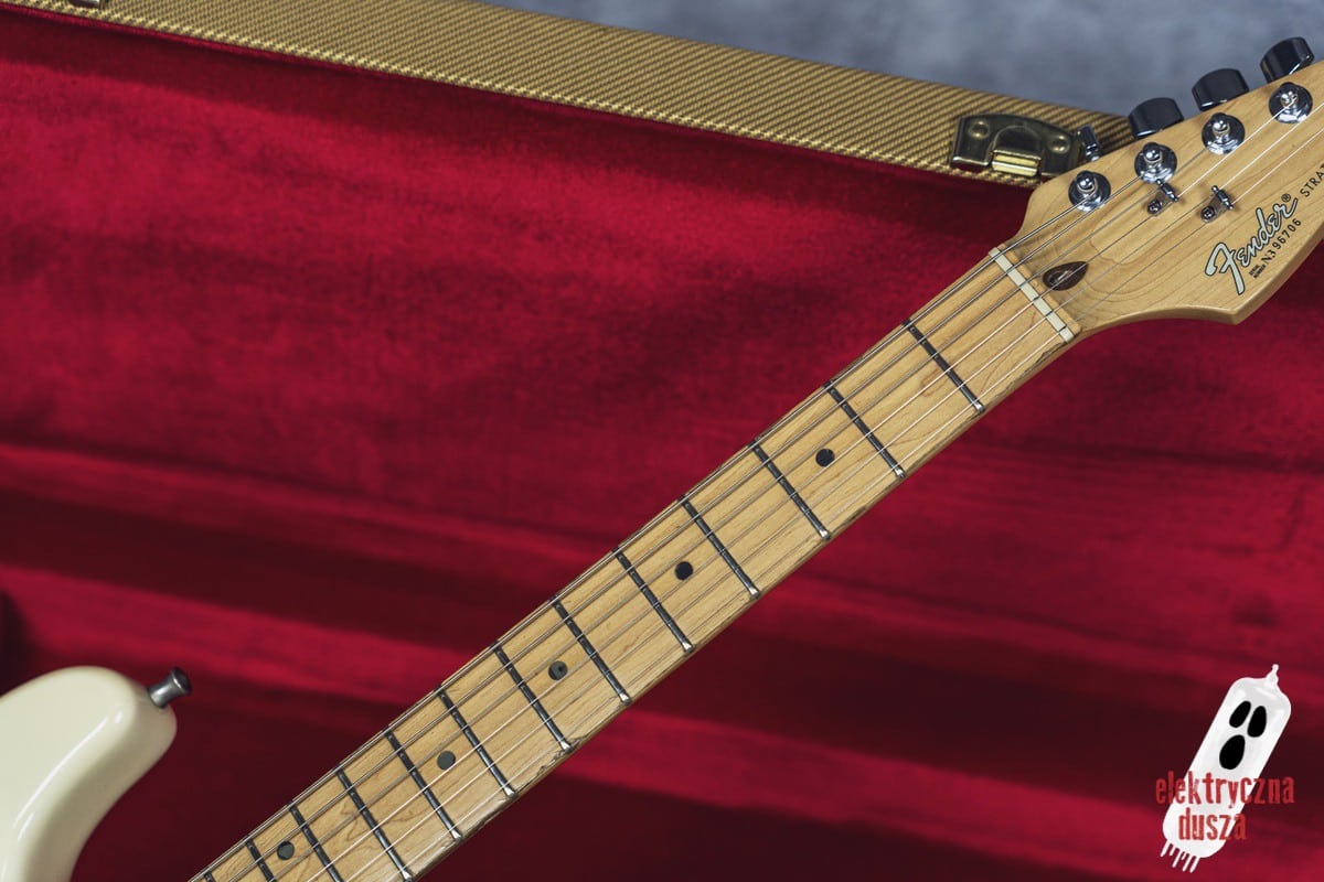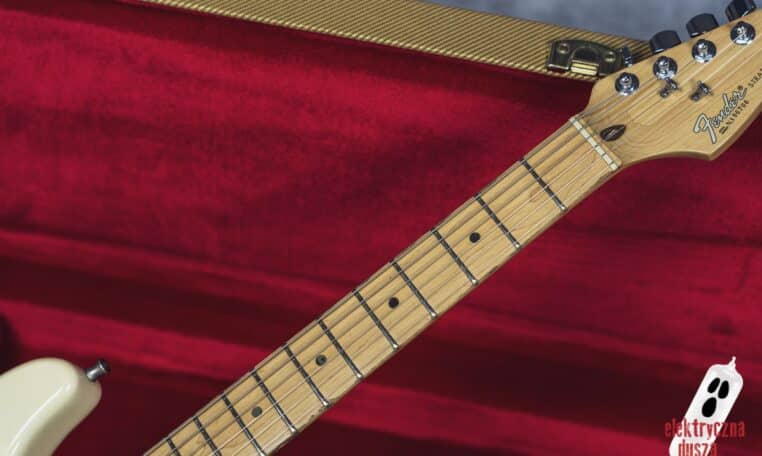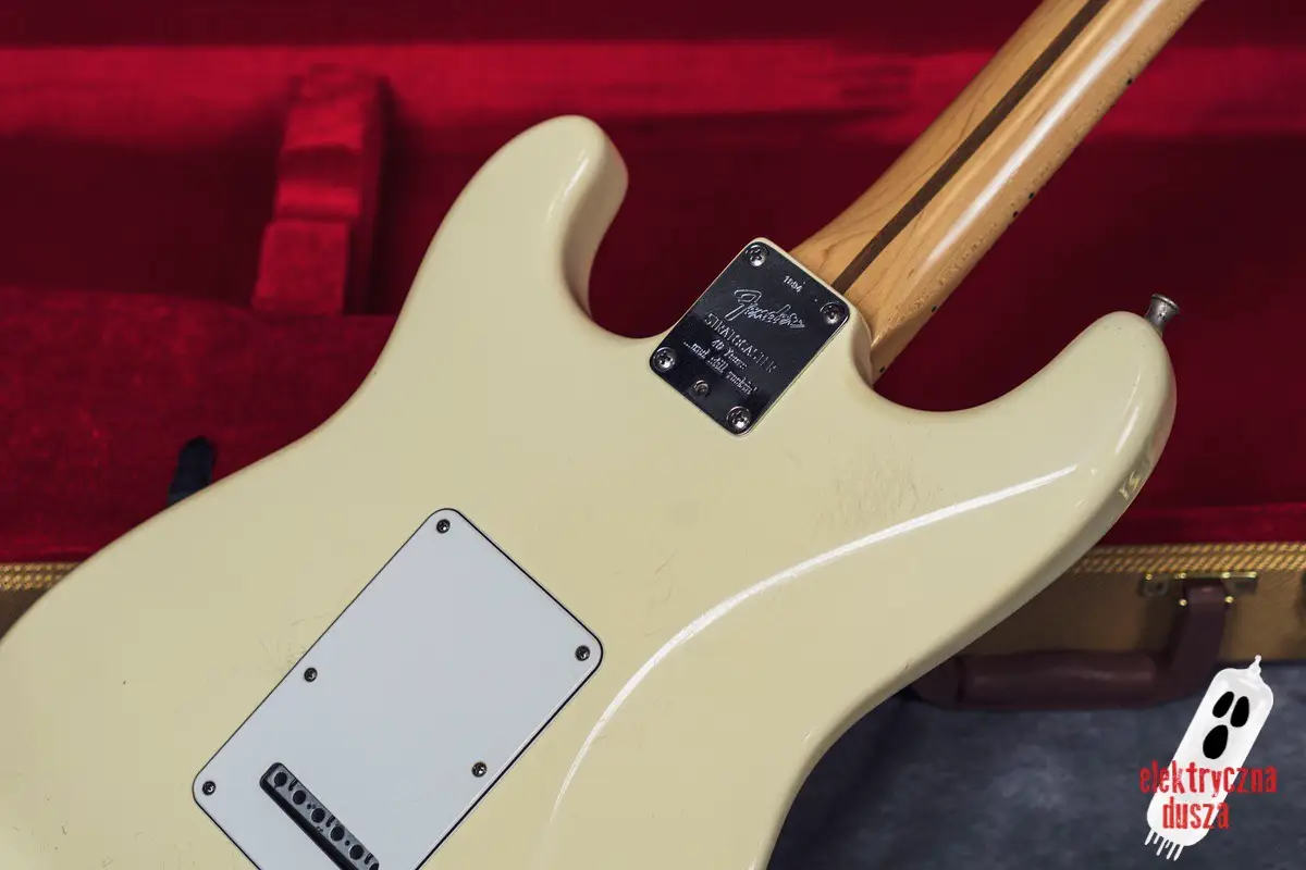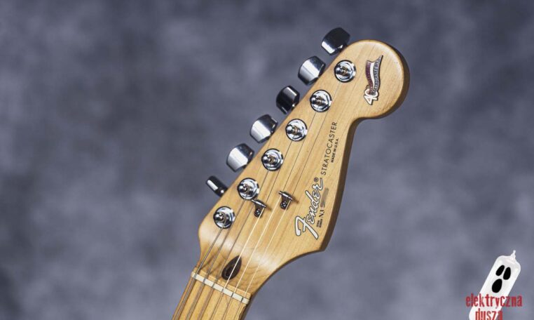 Elektryczna Dusza prezentuje gitarę Fender American Standard Stratocaster w klasycznym wykończeniu Olympic White. Tym razem jest to leciwy już egzemplarz z jubileuszowego rocznika 1994, kiedy to Strat obchodził swoje 40. urodziny (debiut rynkowy w 1954 roku). Z okazji tej okrągłej rocznicy gitara ma specjalny emblemat na główce oraz niestandardowy neckplate z grawerem “Fender Stratocaster – 40 years… and still rockin’”. Strach pomyśleć, że od tamtej pory minęło już kolejne 30 lat!