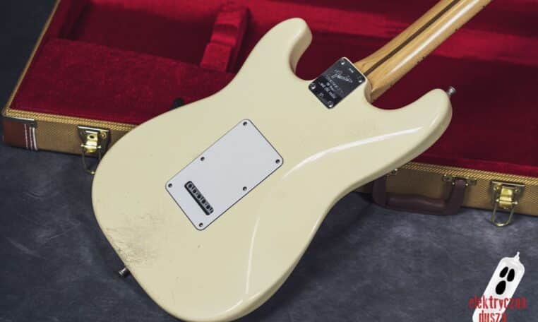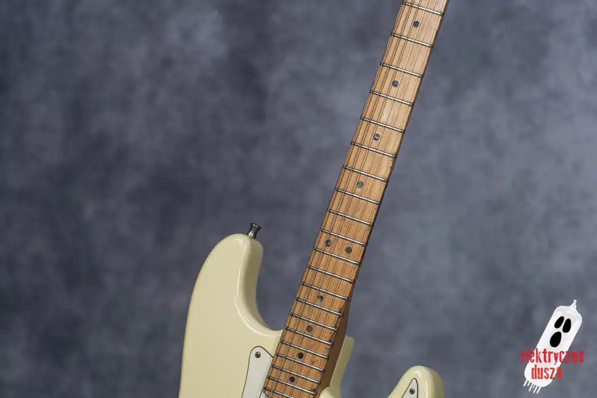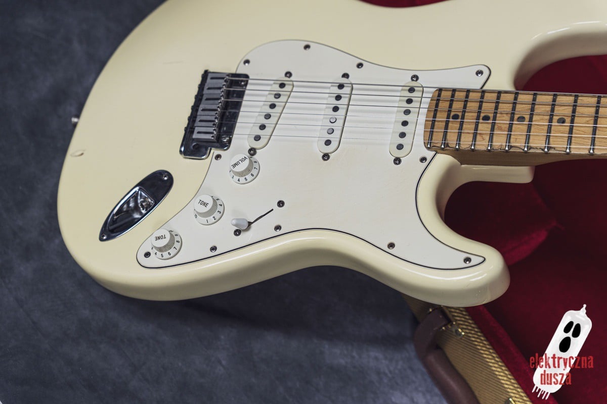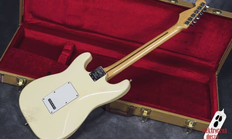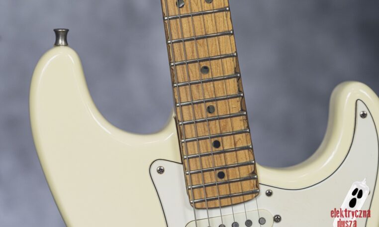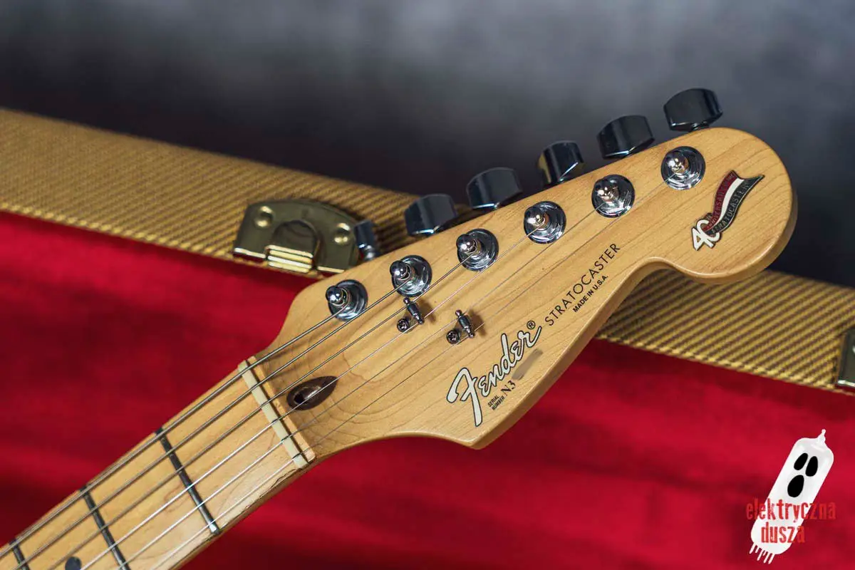 Elektryczna Dusza prezentuje gitarę Fender American Standard Stratocaster w klasycznym wykończeniu Olympic White. Tym razem jest to leciwy już egzemplarz z jubileuszowego rocznika 1994, kiedy to Strat obchodził swoje 40. urodziny (debiut rynkowy w 1954 roku). Z okazji tej okrągłej rocznicy gitara ma specjalny emblemat na główce oraz niestandardowy neckplate z grawerem “Fender Stratocaster – 40 years… and still rockin’”. Strach pomyśleć, że od tamtej pory minęło już kolejne 30 lat!