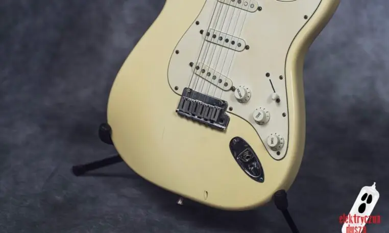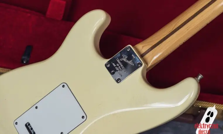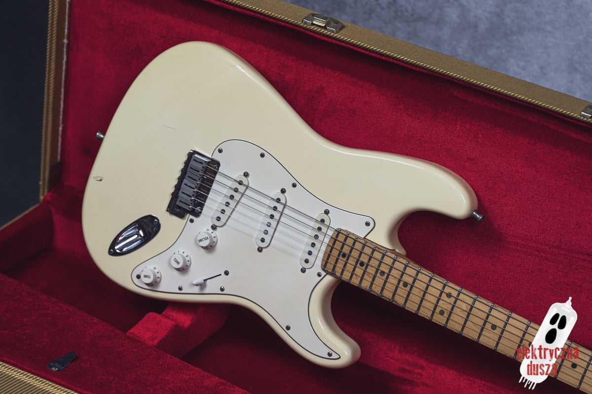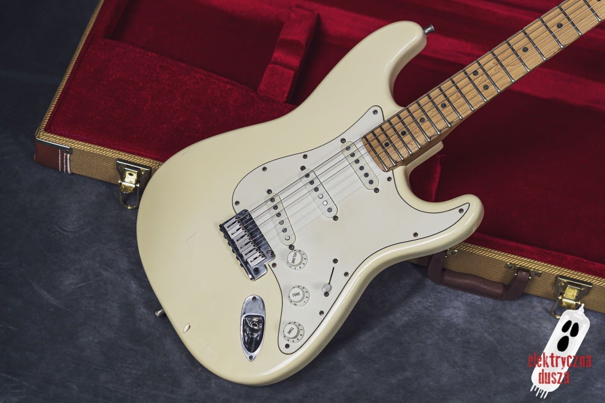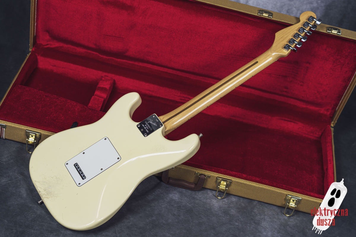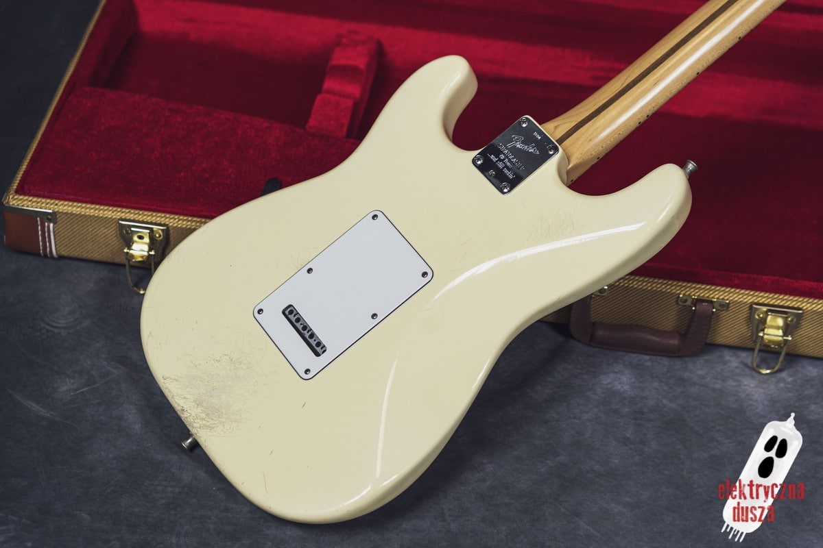 Elektryczna Dusza prezentuje gitarę Fender American Standard Stratocaster w klasycznym wykończeniu Olympic White. Tym razem jest to leciwy już egzemplarz z jubileuszowego rocznika 1994, kiedy to Strat obchodził swoje 40. urodziny (debiut rynkowy w 1954 roku). Z okazji tej okrągłej rocznicy gitara ma specjalny emblemat na główce oraz niestandardowy neckplate z grawerem “Fender Stratocaster – 40 years… and still rockin’”. Strach pomyśleć, że od tamtej pory minęło już kolejne 30 lat!