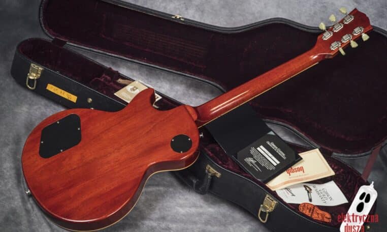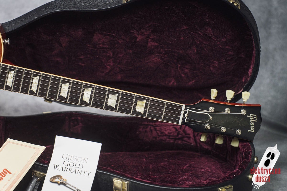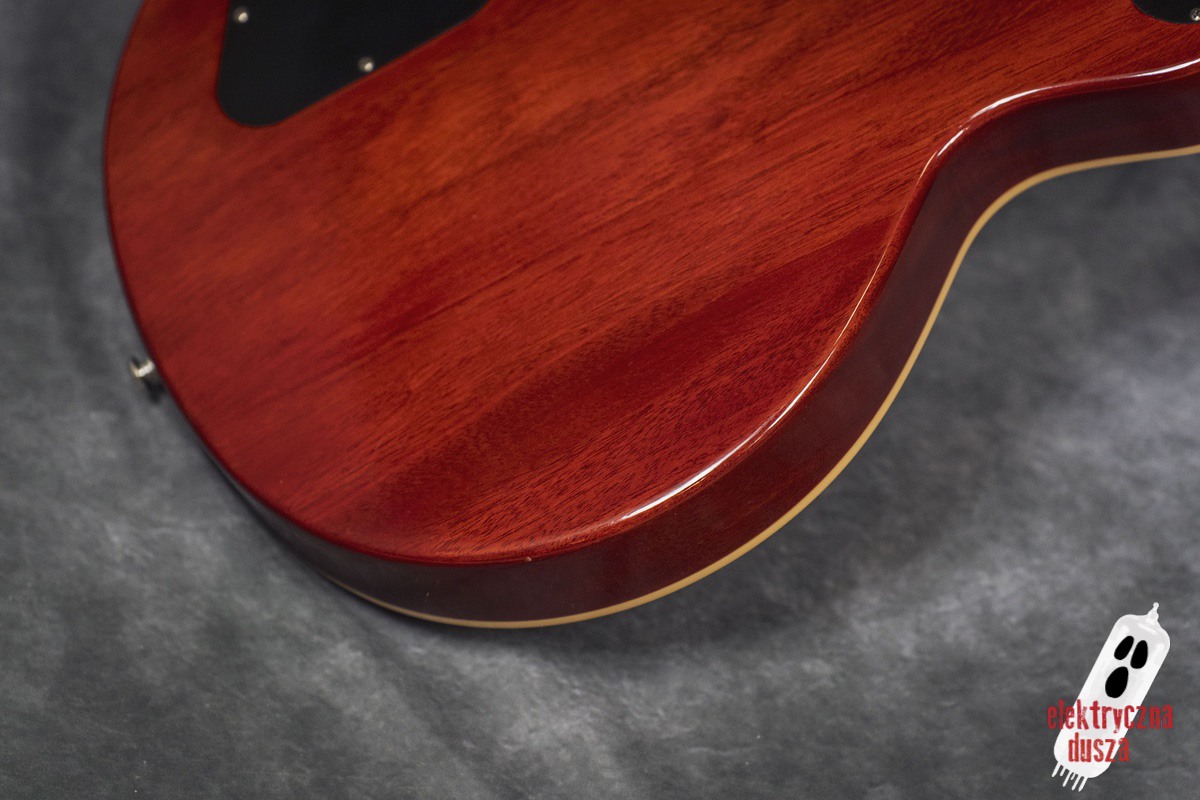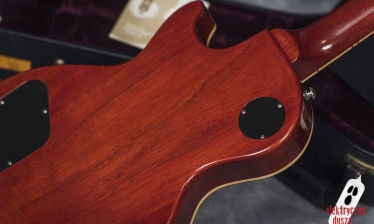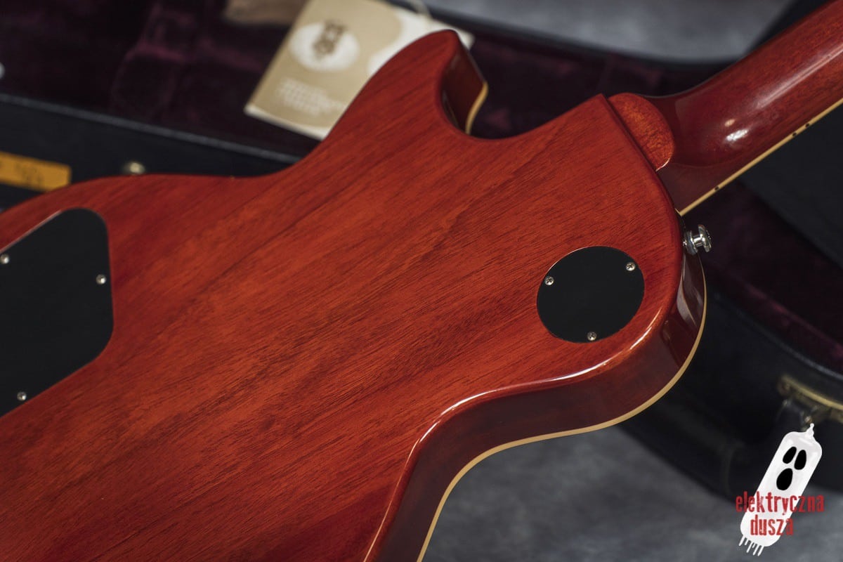 Poprawne historycznie niuanse konstrukcyjne (long tenon, korpus z jednego kawałka bez odciążeń), osprzęt typu vintage (most ABR-1, aluminiowy strunociąg, nylonowe siodełko), staroświecka elektronika (50’s wiring, kondensatory Bumblebee), klasyczne pickupy typu PAF (Burstbucker 1 i 2) oraz oczywiście lakier nitro to tylko niektóre poszukiwane cechy LP, które znajdziecie w tym egzemplarzu.