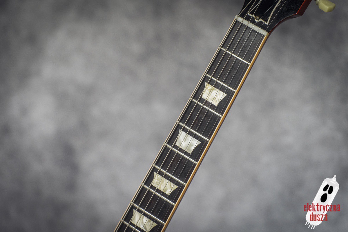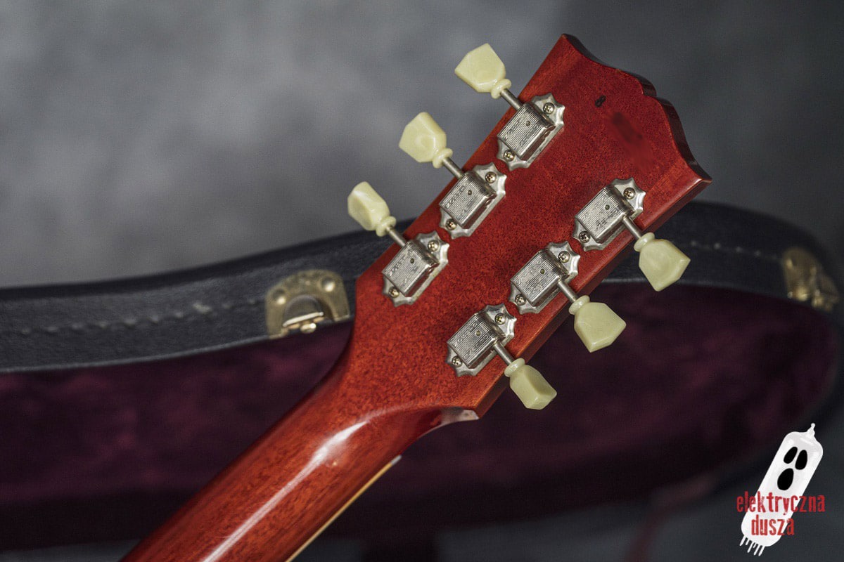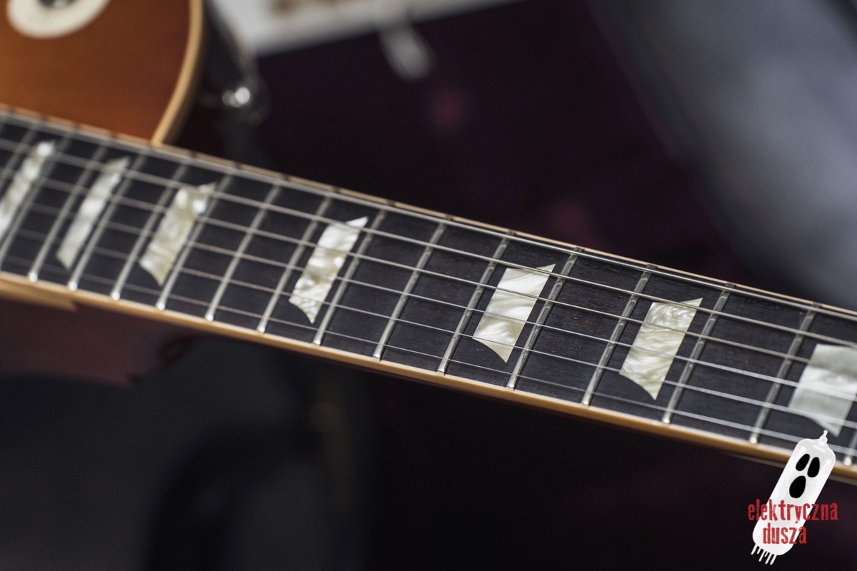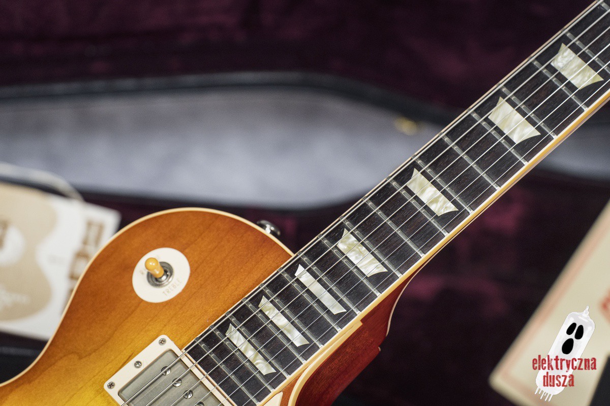 Poprawne historycznie niuanse konstrukcyjne (long tenon, korpus z jednego kawałka bez odciążeń), osprzęt typu vintage (most ABR-1, aluminiowy strunociąg, nylonowe siodełko), staroświecka elektronika (50’s wiring, kondensatory Bumblebee), klasyczne pickupy typu PAF (Burstbucker 1 i 2) oraz oczywiście lakier nitro to tylko niektóre poszukiwane cechy LP, które znajdziecie w tym egzemplarzu.