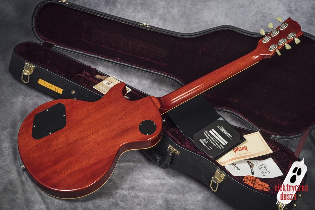 W zestawie oryginalny futerał Gibson Custom Shop z bordowym wnętrzem, certyfikat i komplet papierów.