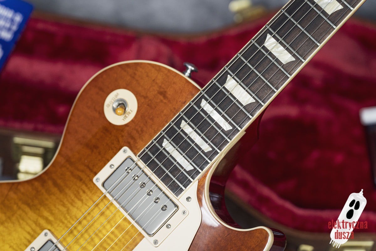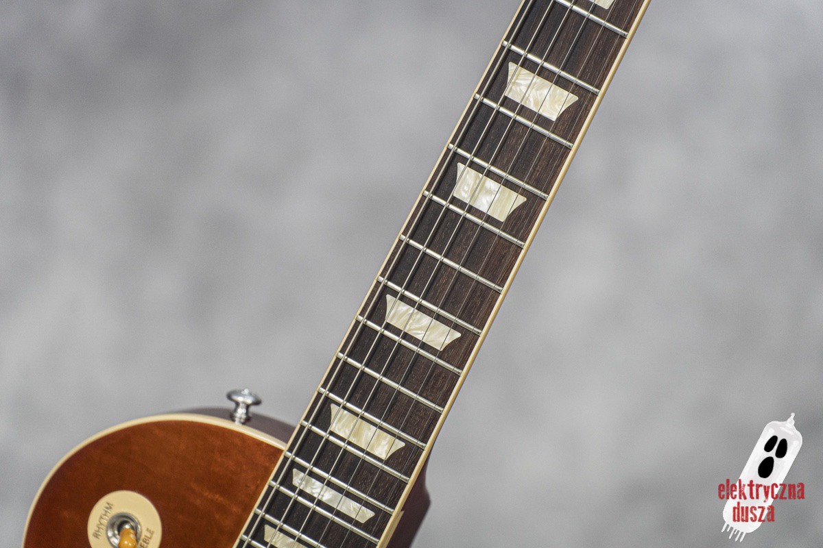 Ten egzemplarz ma gryf typu 60, który z pewnością przypadnie do gustu zwolennikom niezbyt grubych szyjek. Jeśli szukacie Gibsona, który miałby przystępny gryf, jest to zdecydowanie jedna z najlepszych opcji.