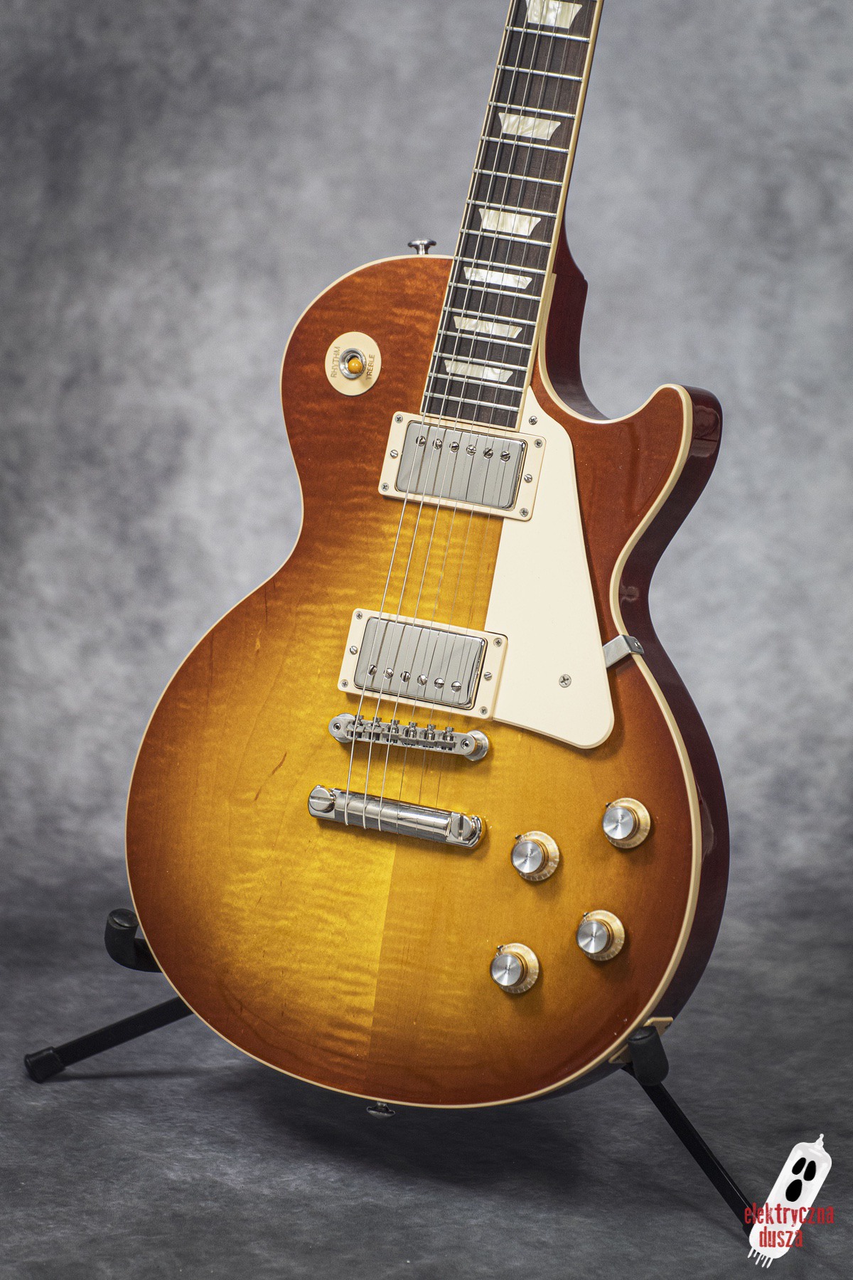 Elektryczna Dusza prezentuje gitarę Gibson Les Paul Standard. Tym razem egzemplarz efektownym wykończeniu Iced Tea wyprodukowany w roku 2021.
