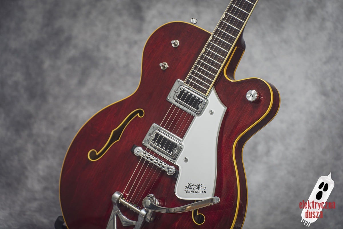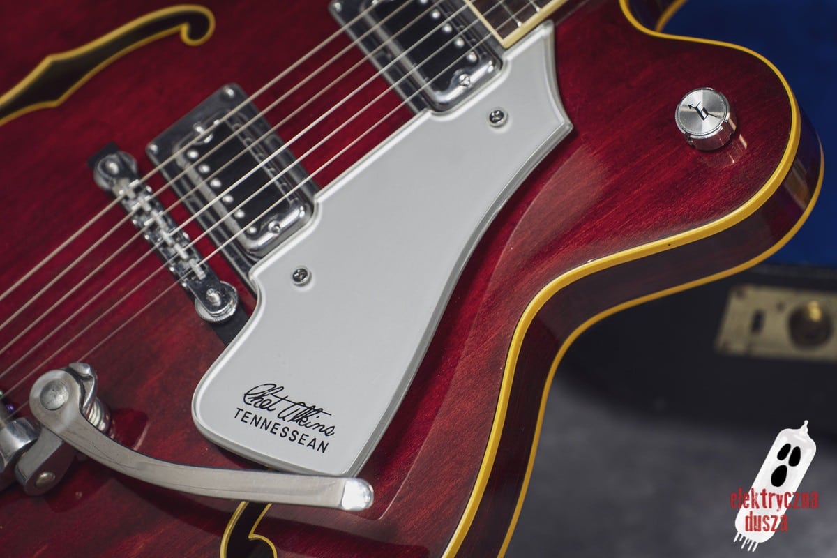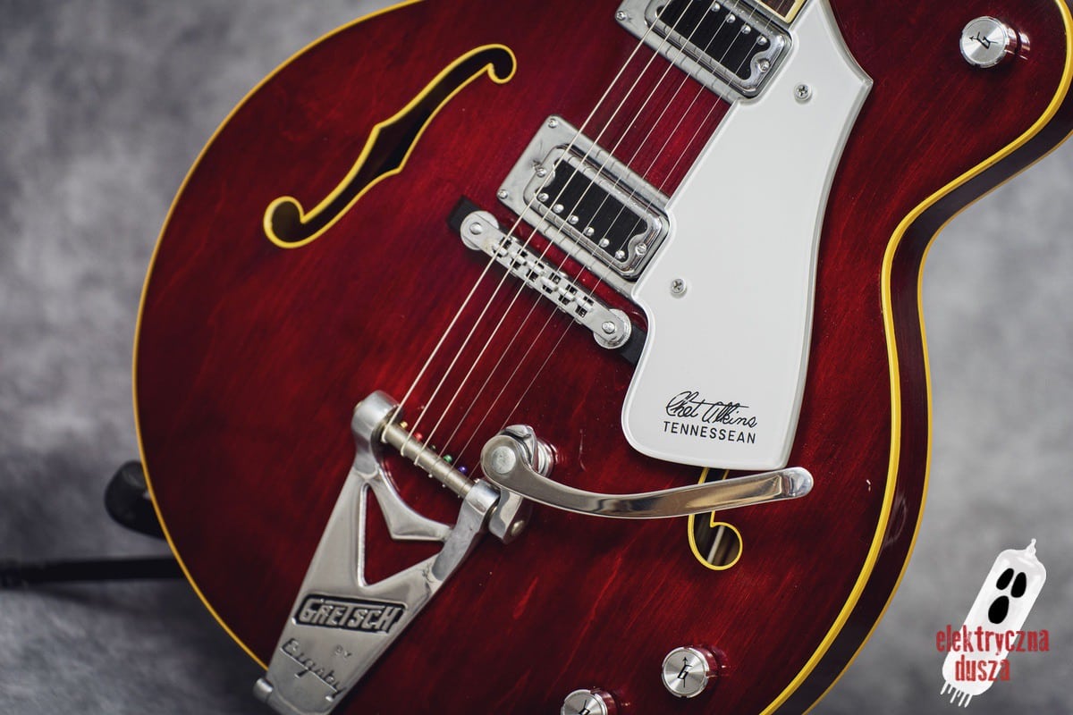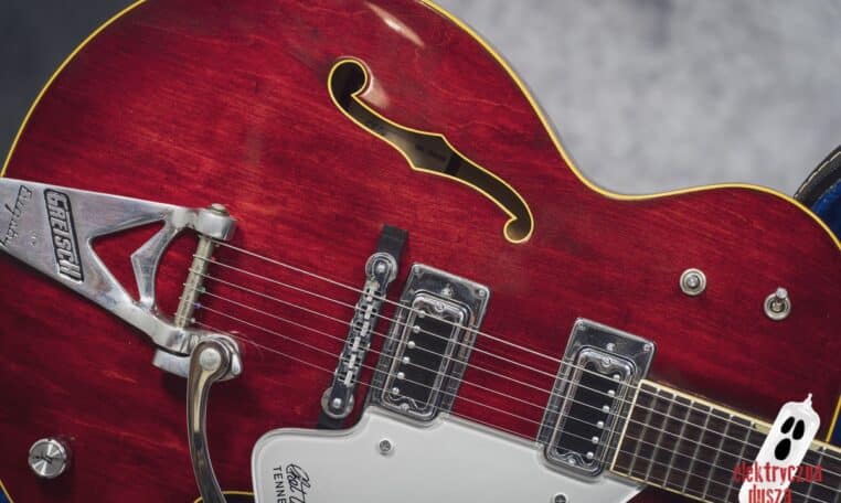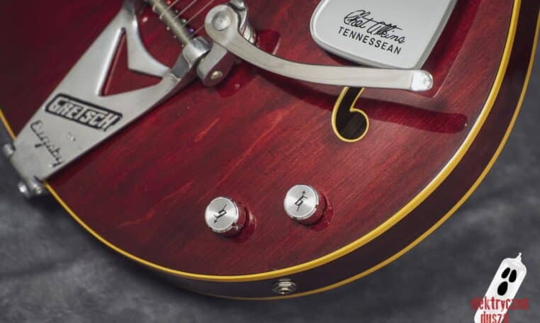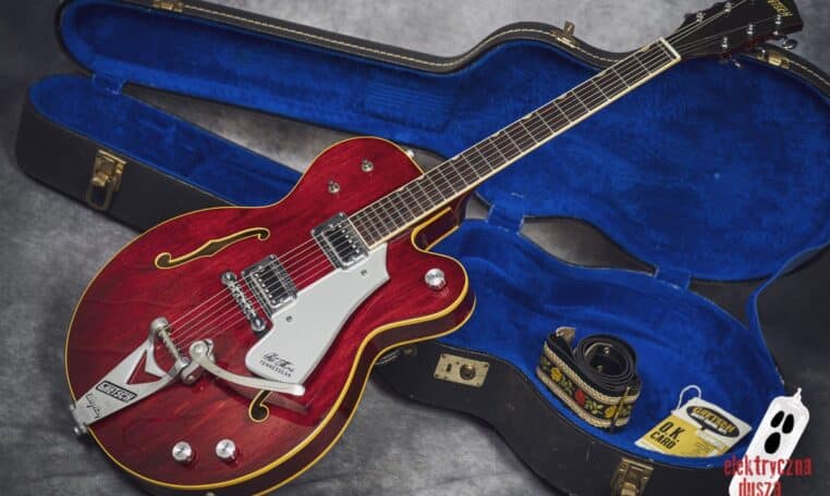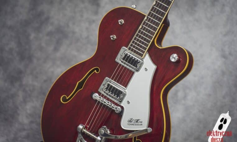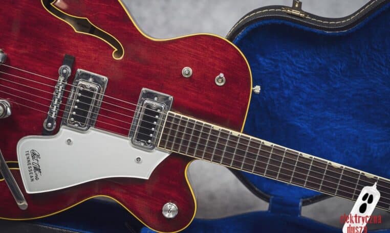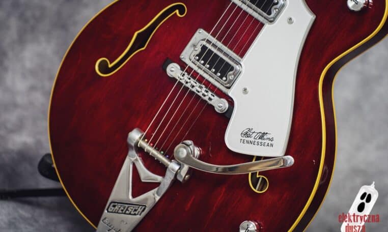 Elektryczna Dusza prezentuje gitarę hollow body Gretsch 7655 Chet Atkins Tennessean. To nie współczesna reedycja, lecz egzemplarz z 1971 roku, wyprodukowany jeszcze w USA. Ten model to bez dwóch zdań jeden z gitarowych klasyków, który należy zaliczyć do instrumentów wszech czasów – prawdziwy wehikuł czasu przenoszący do dawnych dekad.