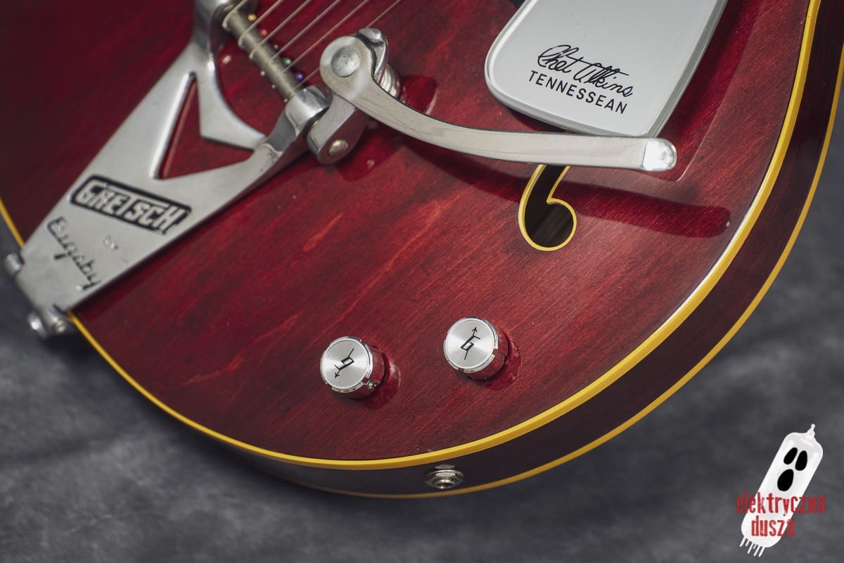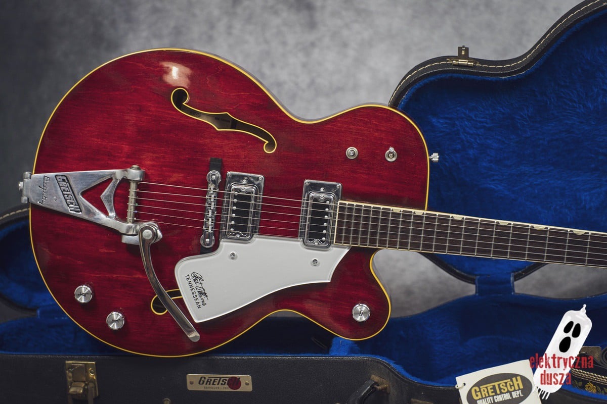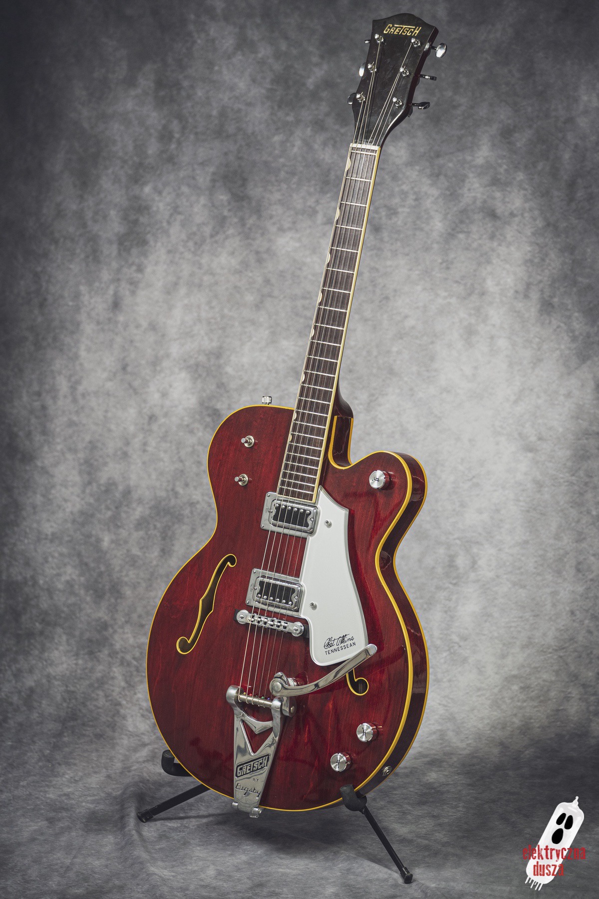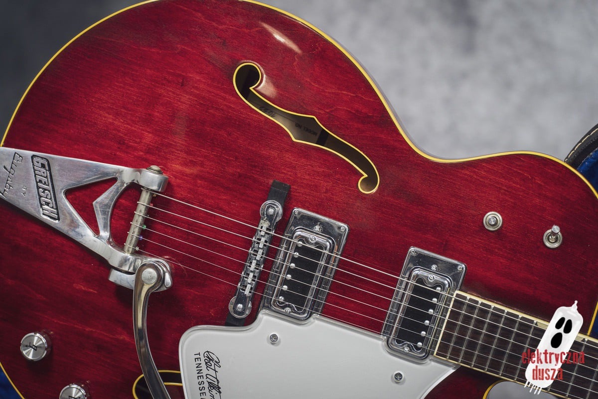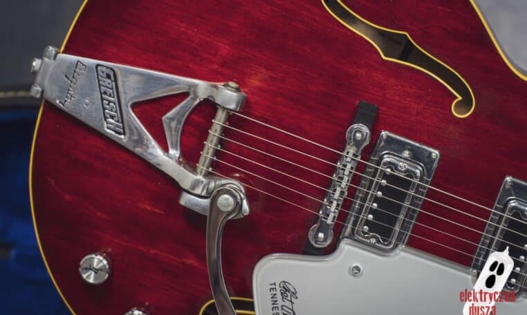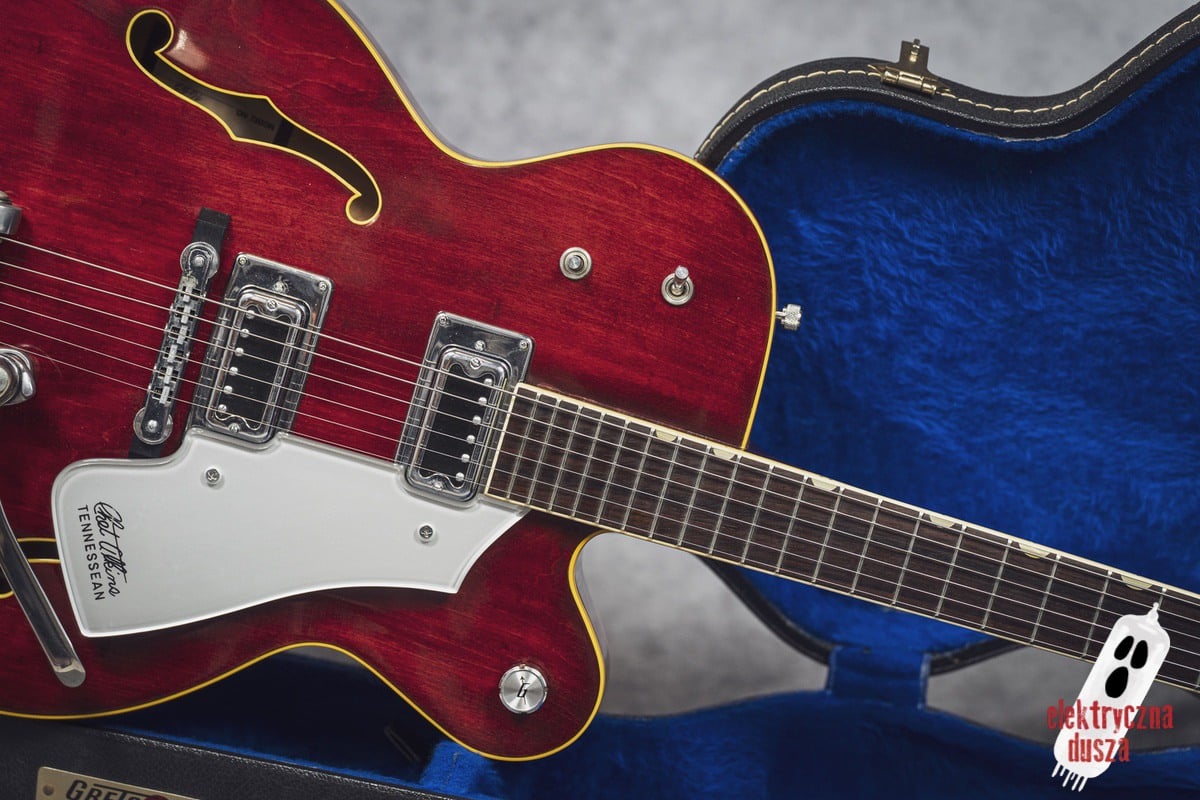 Elektryczna Dusza prezentuje gitarę hollow body Gretsch 7655 Chet Atkins Tennessean. To nie współczesna reedycja, lecz egzemplarz z 1971 roku, wyprodukowany jeszcze w USA. Ten model to bez dwóch zdań jeden z gitarowych klasyków, który należy zaliczyć do instrumentów wszech czasów – prawdziwy wehikuł czasu przenoszący do dawnych dekad.