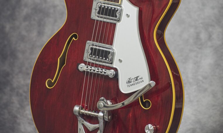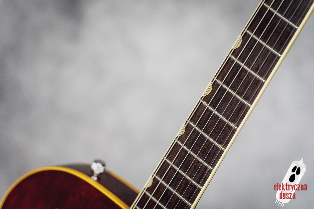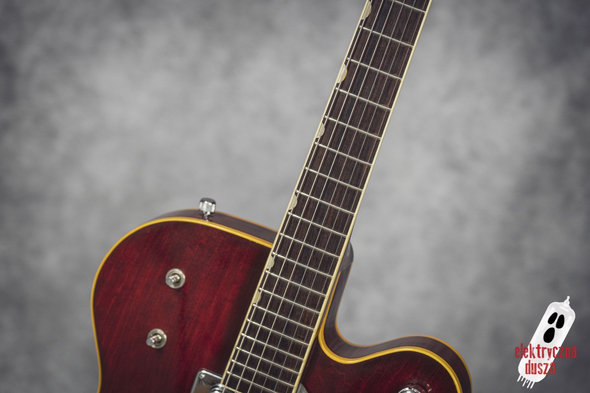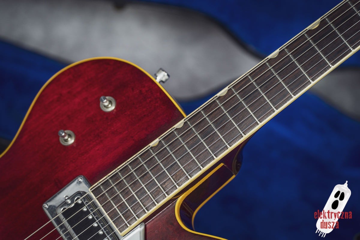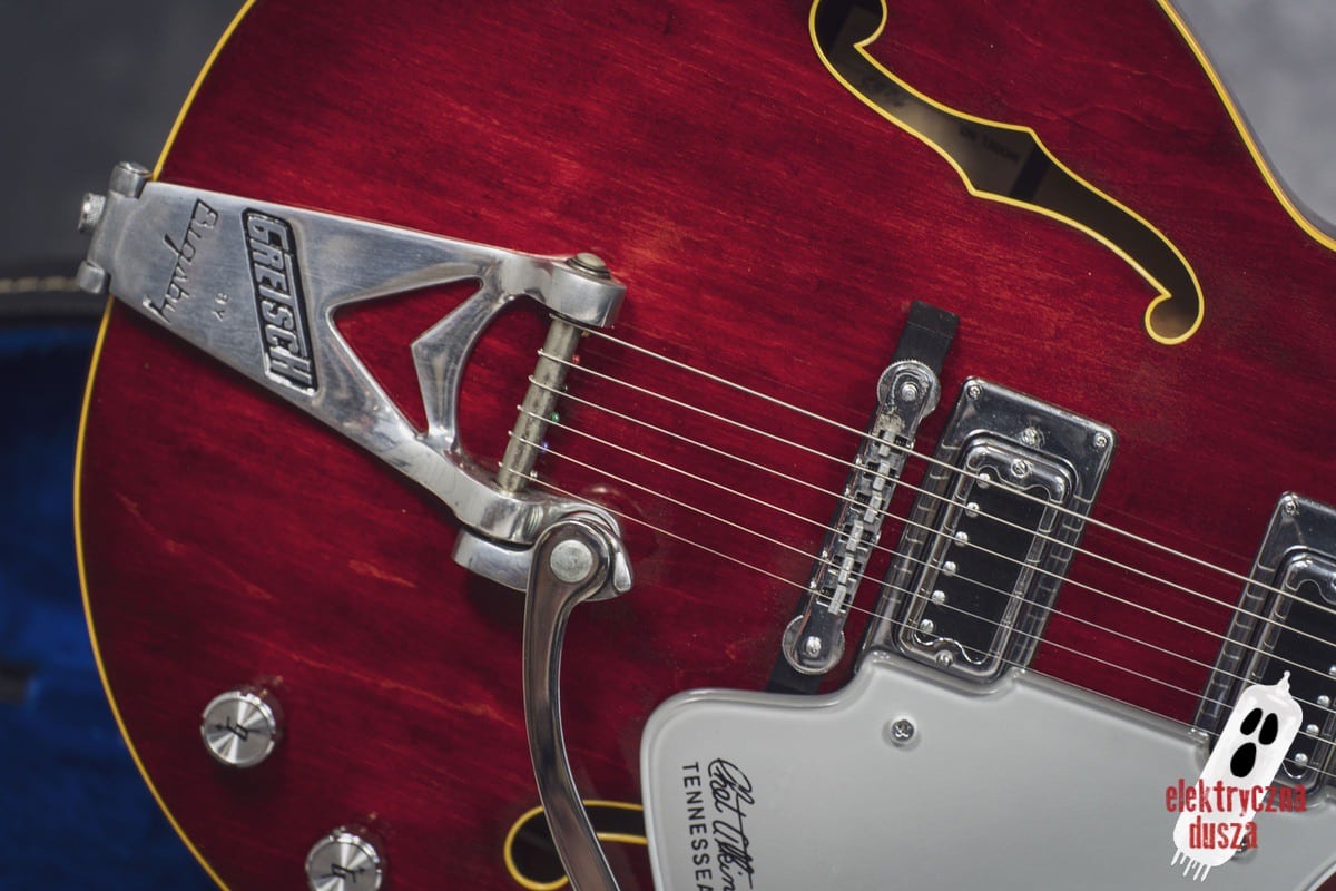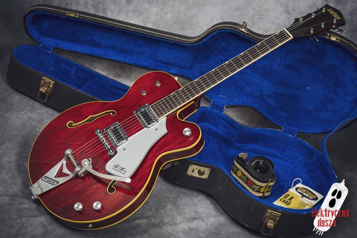 Elektryczna Dusza prezentuje gitarę hollow body Gretsch 7655 Chet Atkins Tennessean. To nie współczesna reedycja, lecz egzemplarz z 1971 roku, wyprodukowany jeszcze w USA. Ten model to bez dwóch zdań jeden z gitarowych klasyków, który należy zaliczyć do instrumentów wszech czasów – prawdziwy wehikuł czasu przenoszący do dawnych dekad.